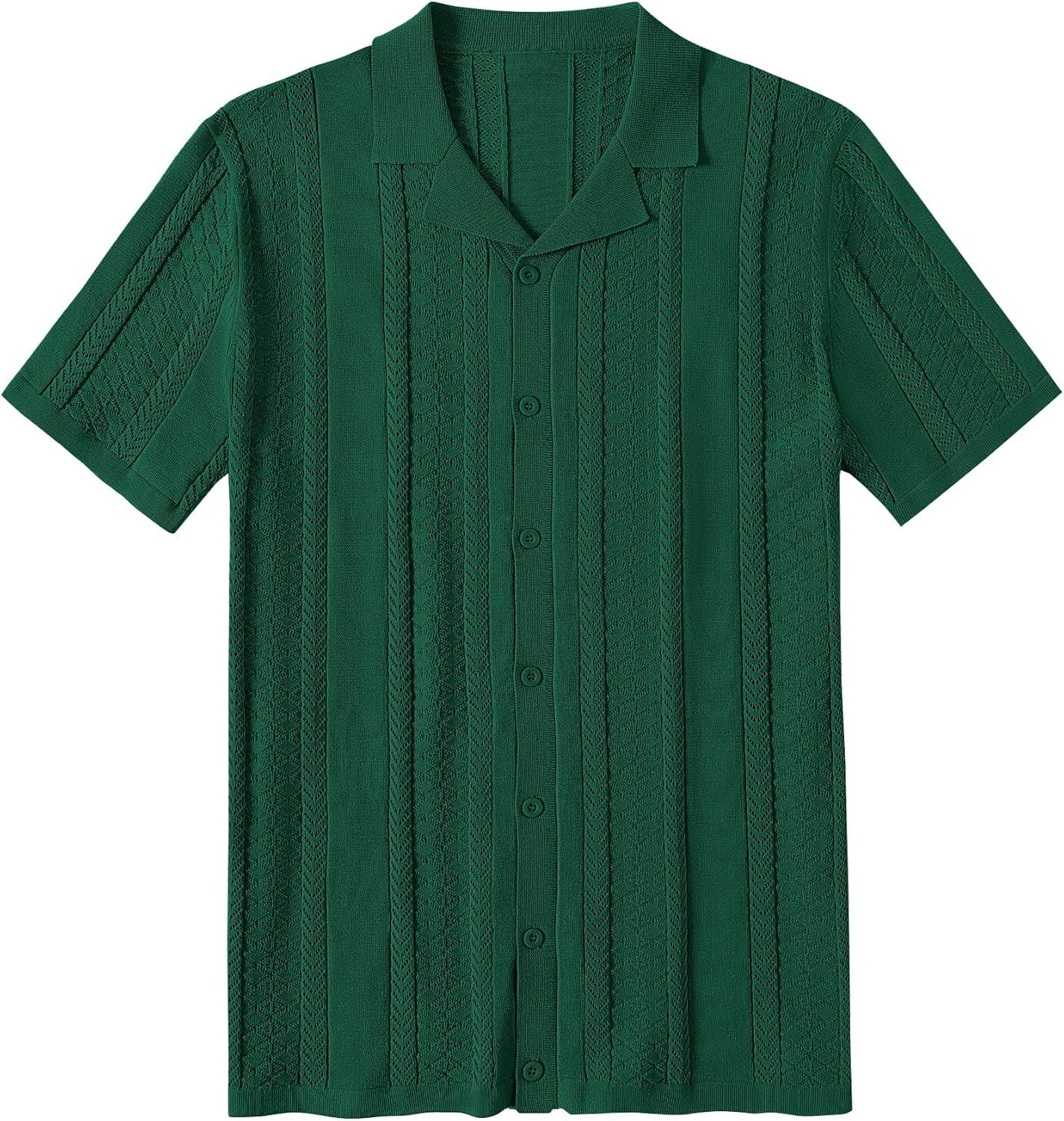 COOFANDY Men's Knit Shirts Vintage Short Sleeve Button Down Shirt Casual Summer Beach Shirt(Green)