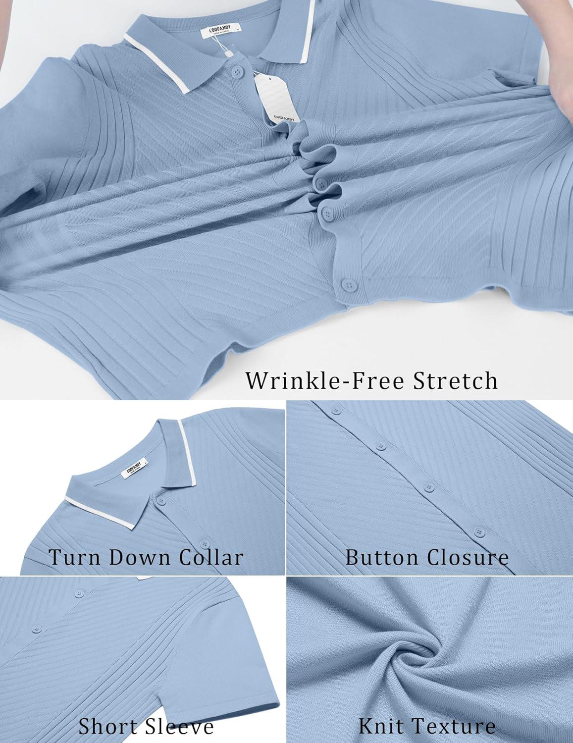 COOFANDY Men's Knit Short Sleeve Button Down Shirt Vintage Polo Shirt Casual Summer Beach Shirts(Angel Falls)