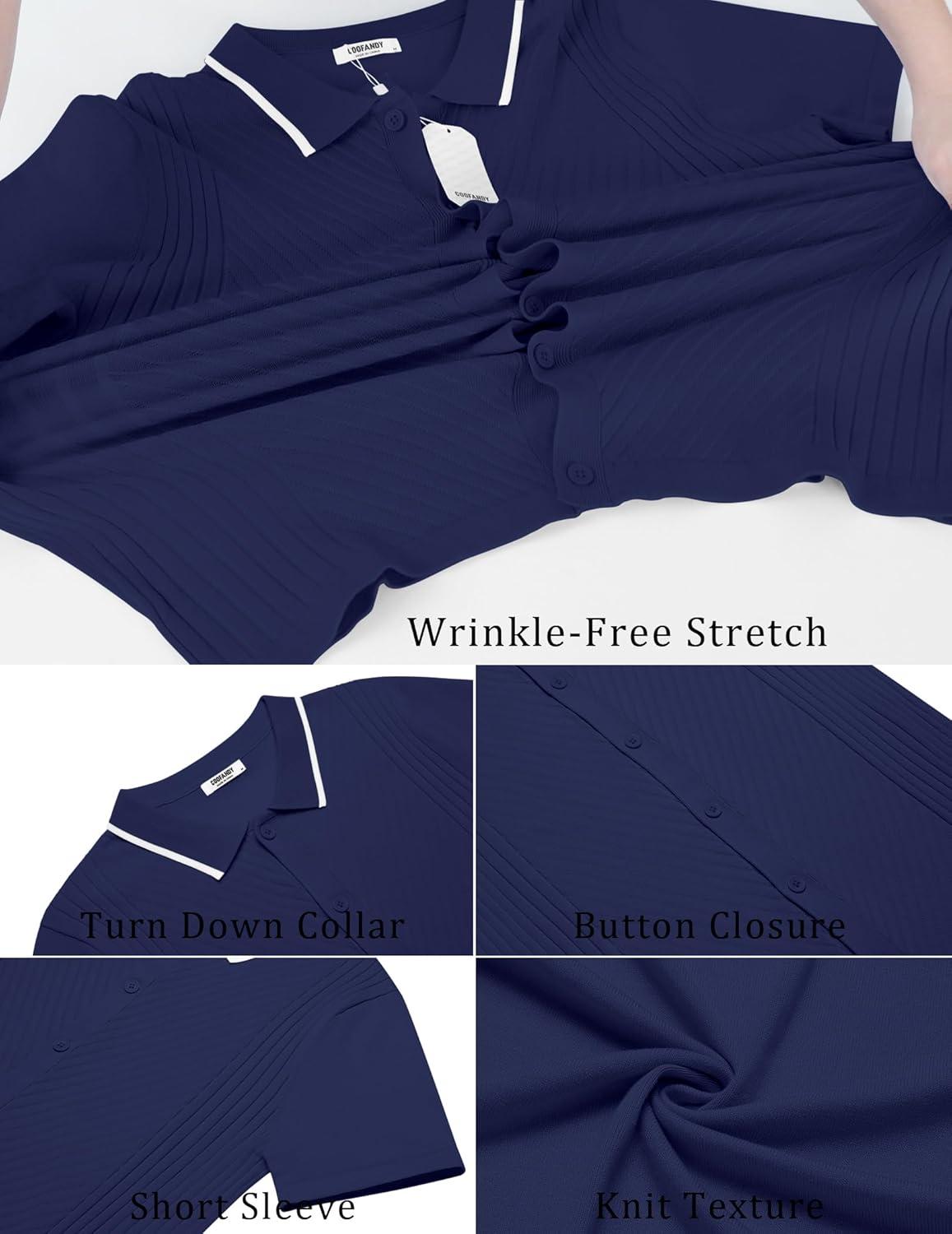 COOFANDY Men's Knit Short Sleeve Button Down Shirt Vintage Polo Shirt Casual Summer Beach Shirts(Black Iris)