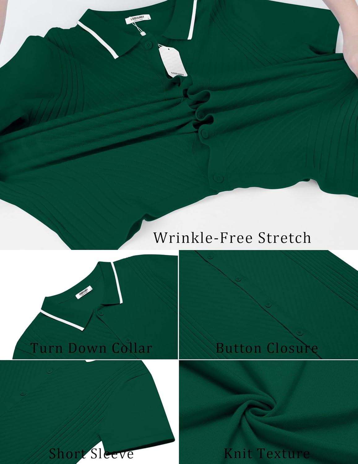 imageCOOFANDY Mens Knit Short Sleeve Button Down Shirt Vintage Polo Shirt Casual Summer Beach ShirtsEvergreen