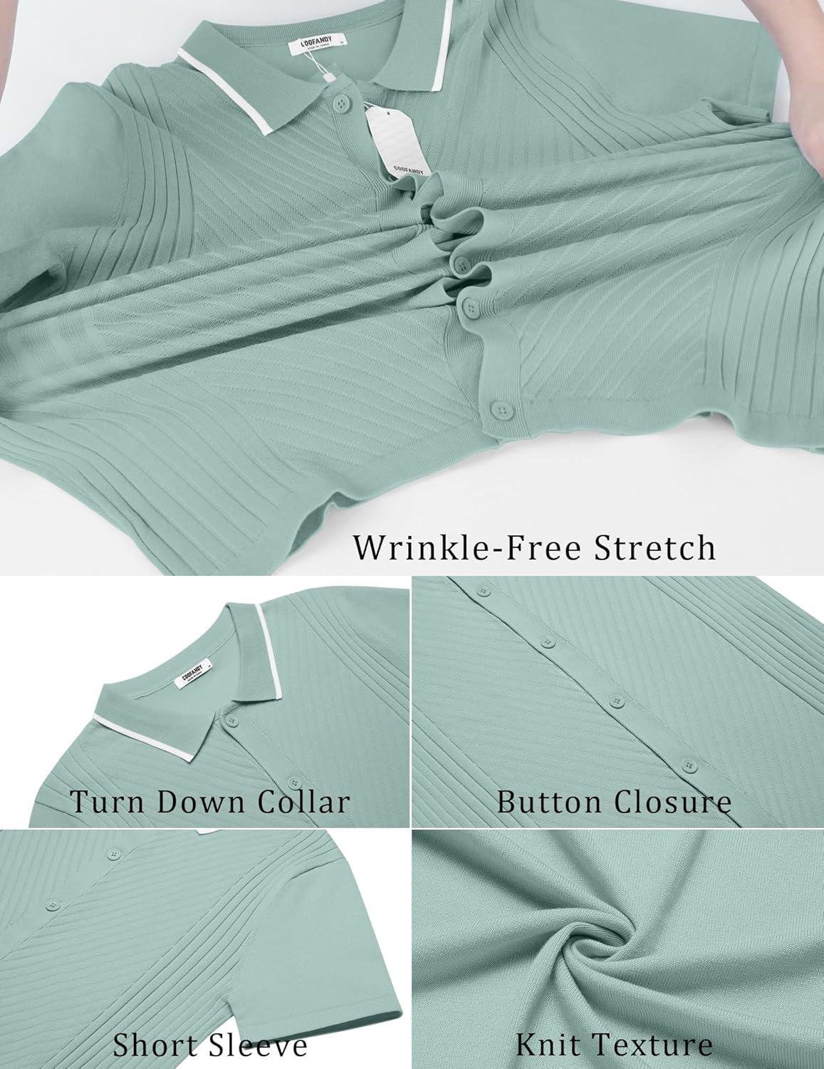 COOFANDY Men's Knit Short Sleeve Button Down Shirt Vintage Polo Shirt Casual Summer Beach Shirts(Gossamer Green)
