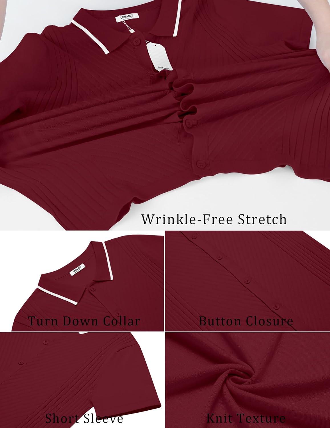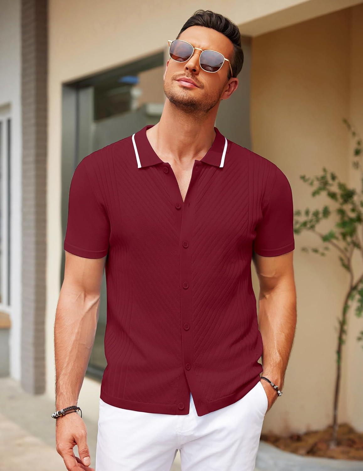 Don’t wait, get up to 50% off on COOFANDY Men’s Knit Short Sleeve Button Down Shirt Vintage Polo Shirt Casual Summer Beach Shirts(Red Dahlia) during our end-of-season sale event.