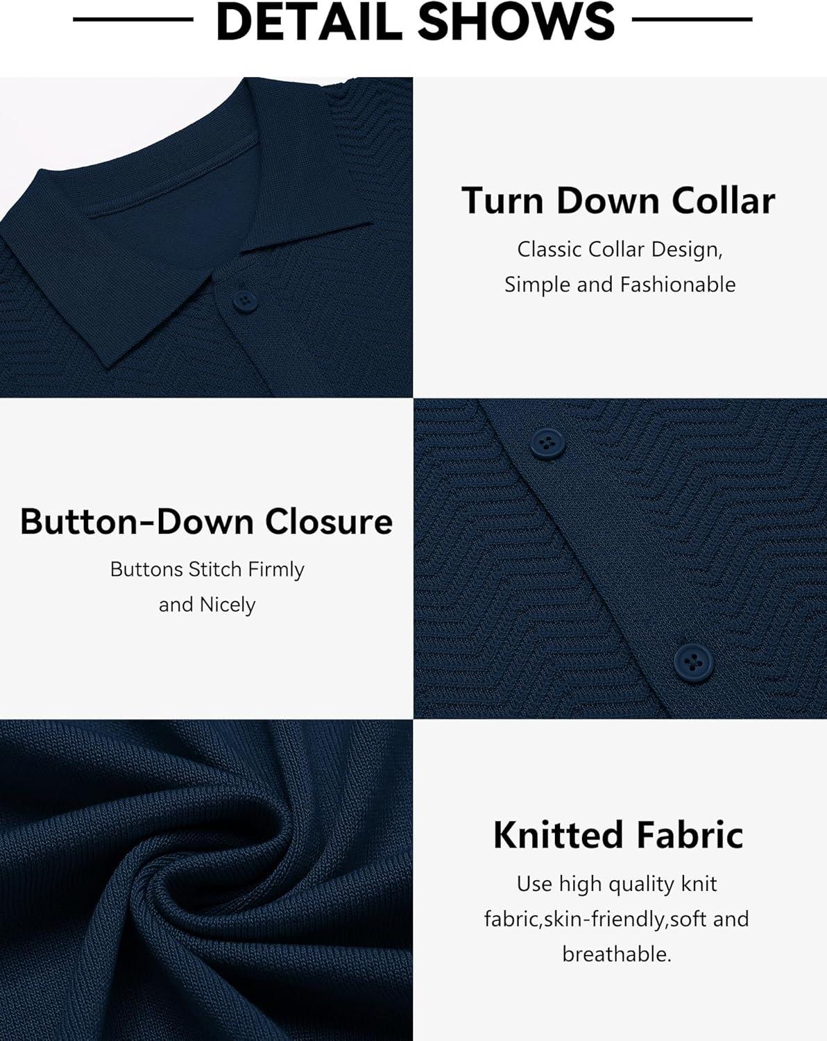 Be the first to review “COOFANDY Mens Knit Short Sleeve Shirt Casual Button Down Shirt Vintage Fashion Polo Shirts Crochet Summer Beach Shirts(Navy Blue)”