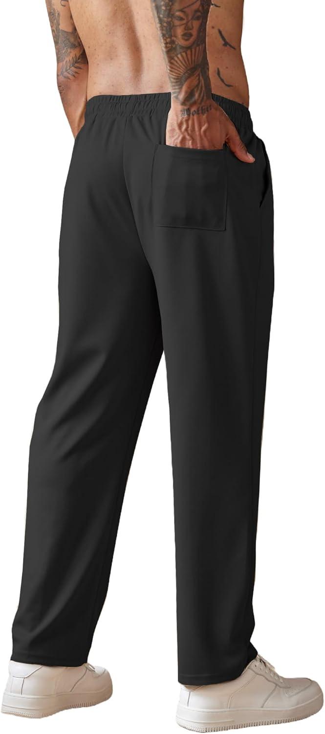 COOFANDY Men's Knit Sweatpants Lightweight Open Bottom Casual Pants Drawstring Jogger Yoga Pants with Pockets(Black)