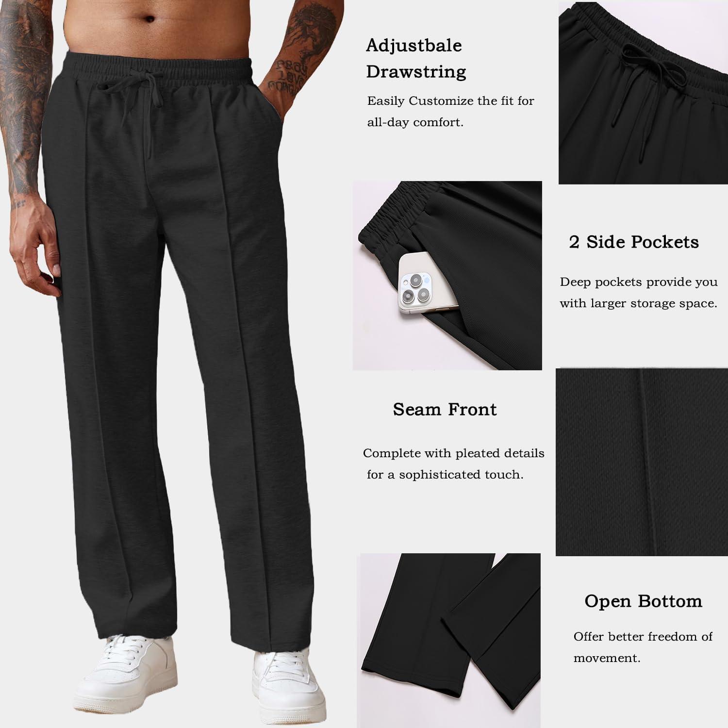 Save big on COOFANDY Men’s Knit Sweatpants Lightweight Open Bottom Casual Pants Drawstring Jogger Yoga Pants with Pockets(Black) during our summer blowout sale. Limited quantities available.