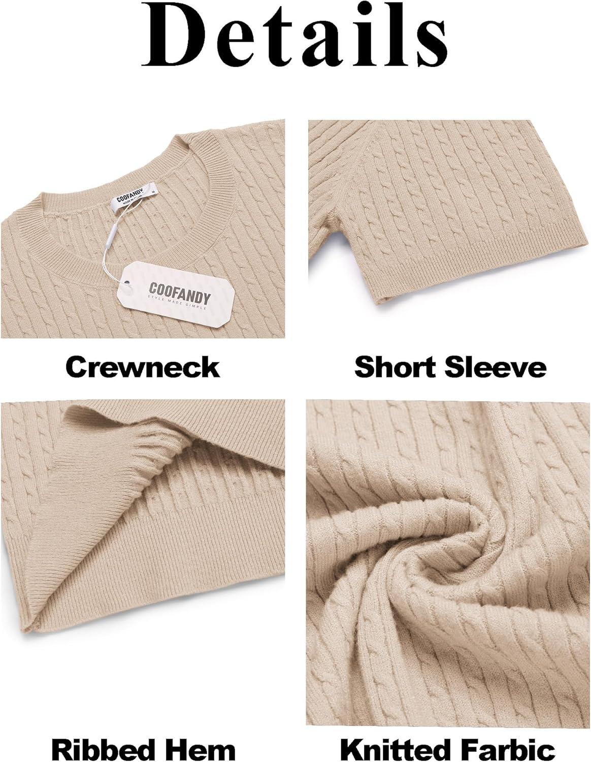 COOFANDY Men’s Knit T Shirt Short Sleeve Crewneck Casual Vintage T-Shirts Summer Twist Knitted Pullover Tee(Beige)