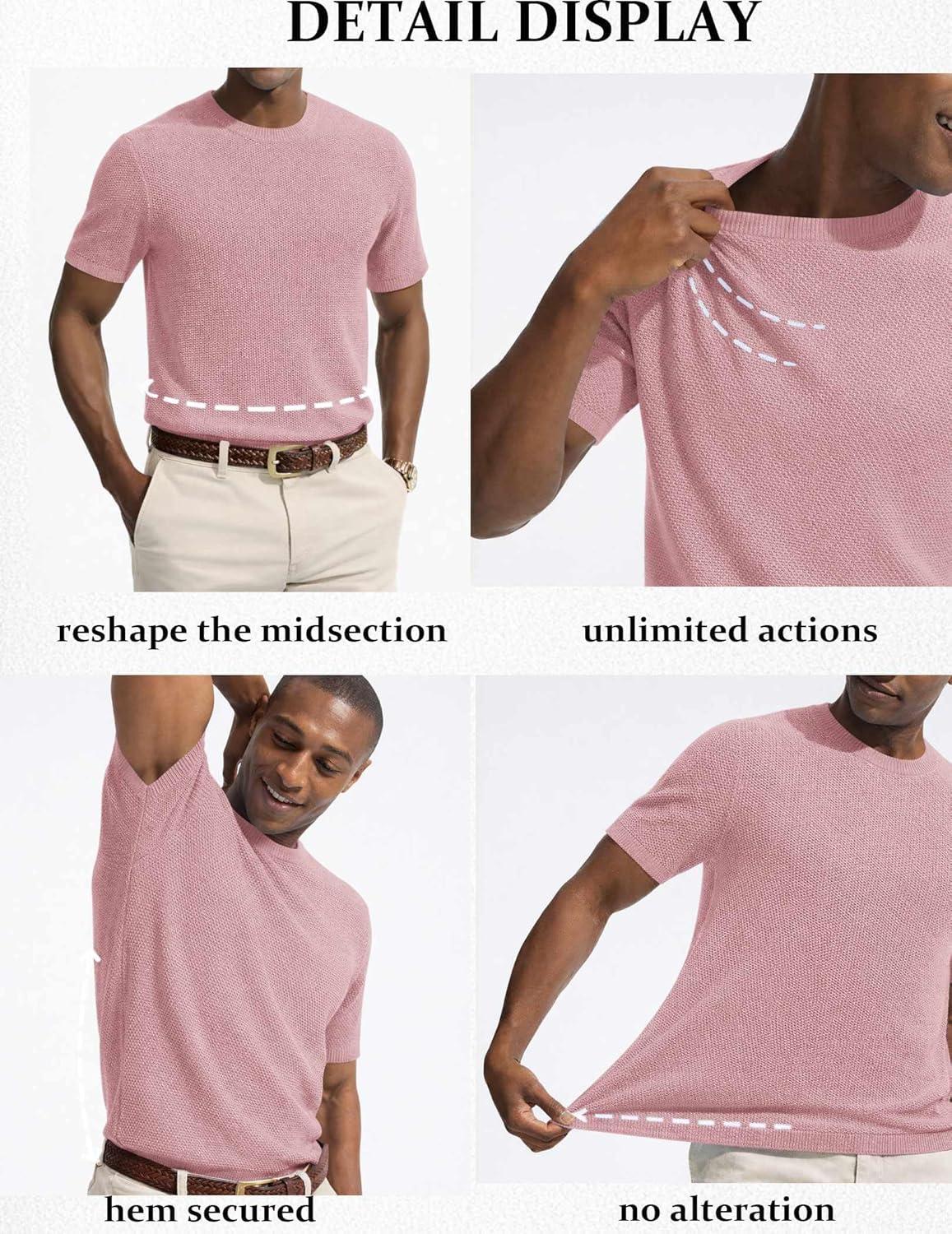imageCOOFANDY Mens Knit TShirts Casual Short Sleeve Crewneck Shirt Textured Pullover TeesPink