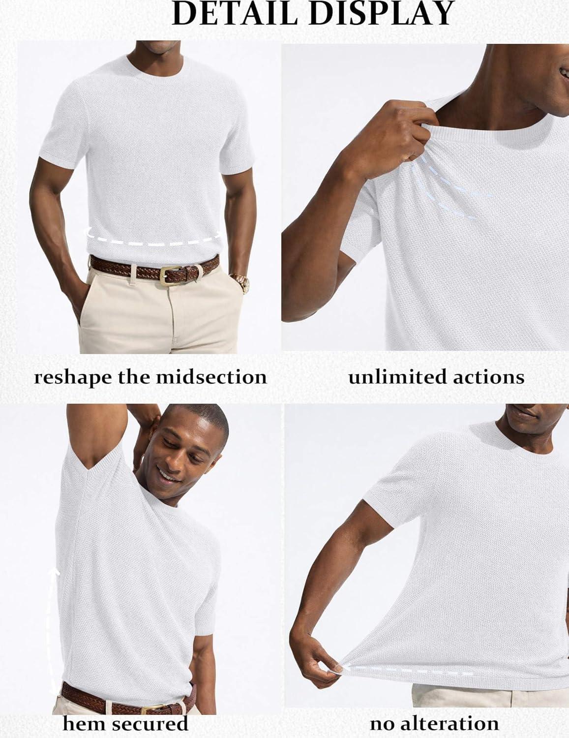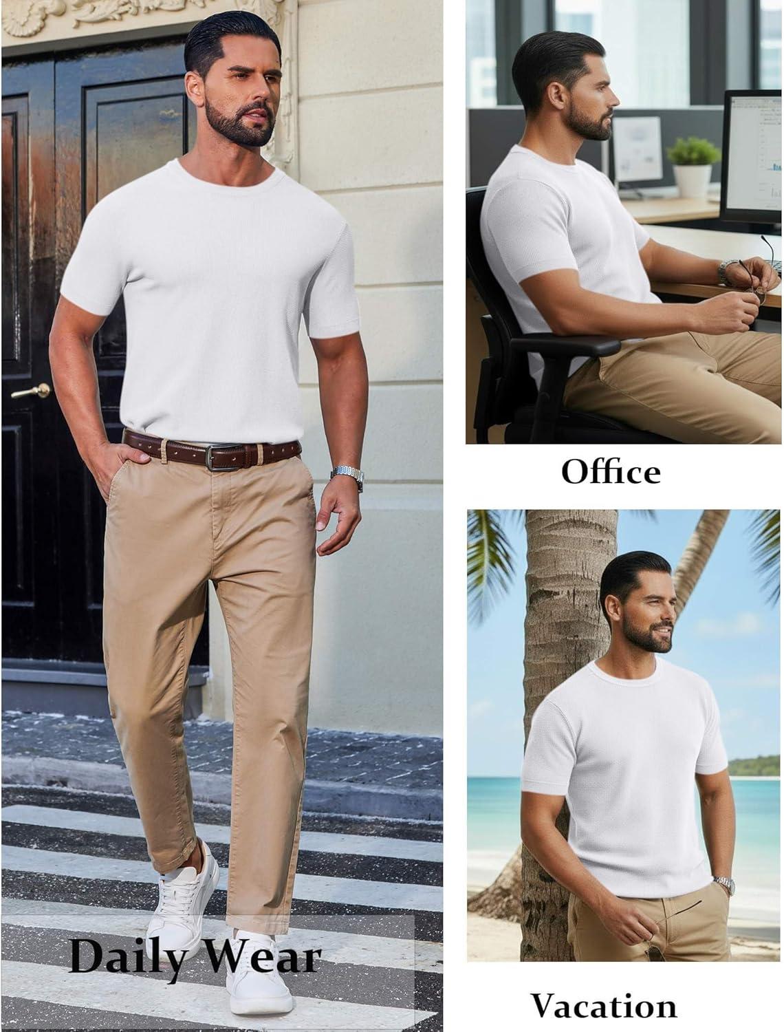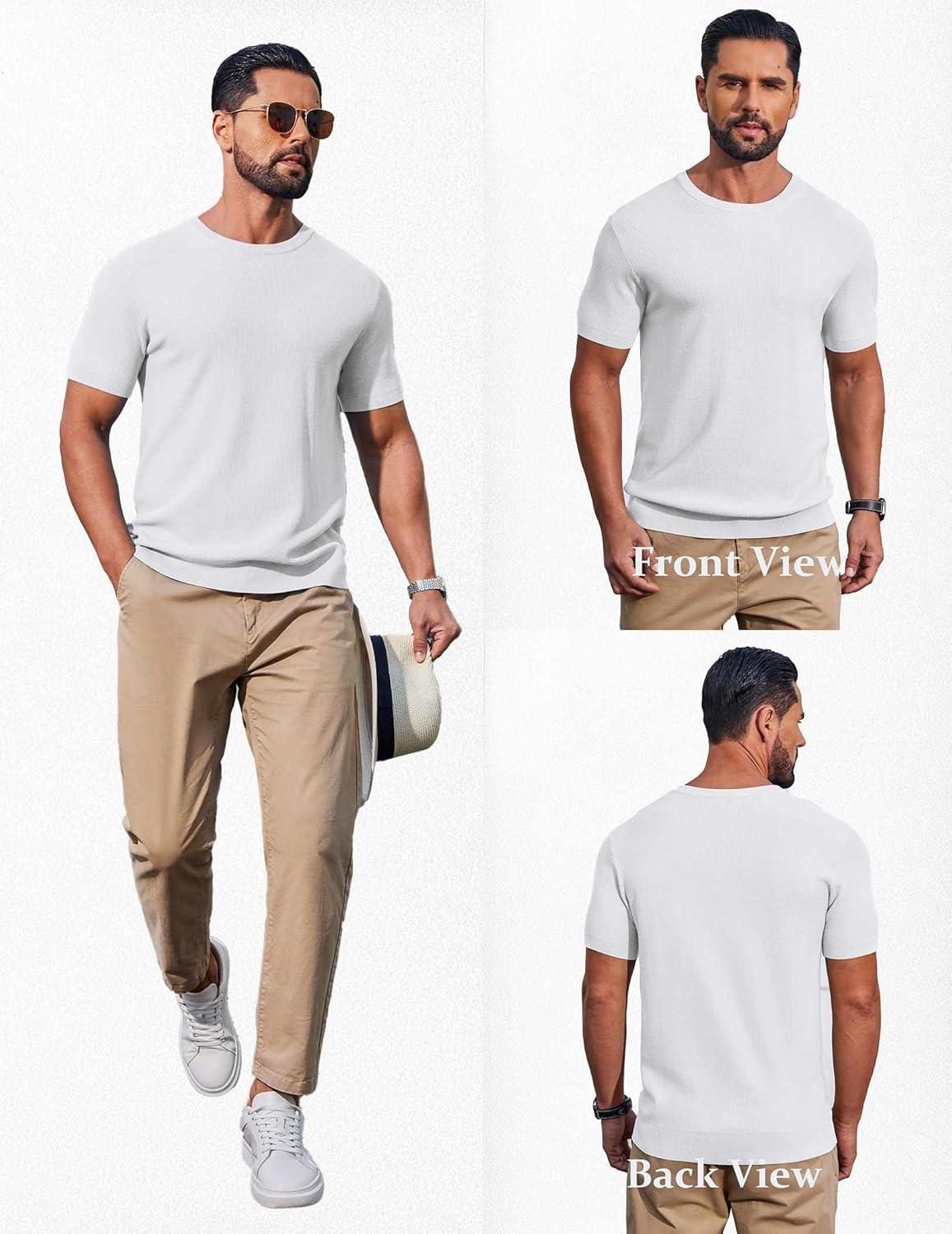 COOFANDY Mens Knit T-Shirts Casual Short Sleeve Crewneck Shirt Textured Pullover Tees(White)