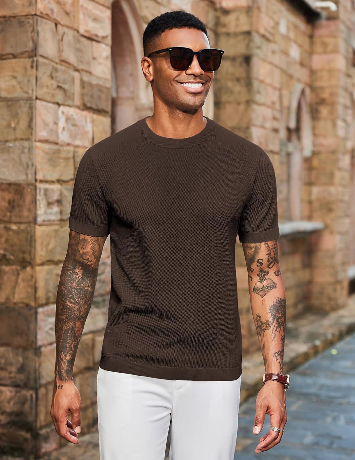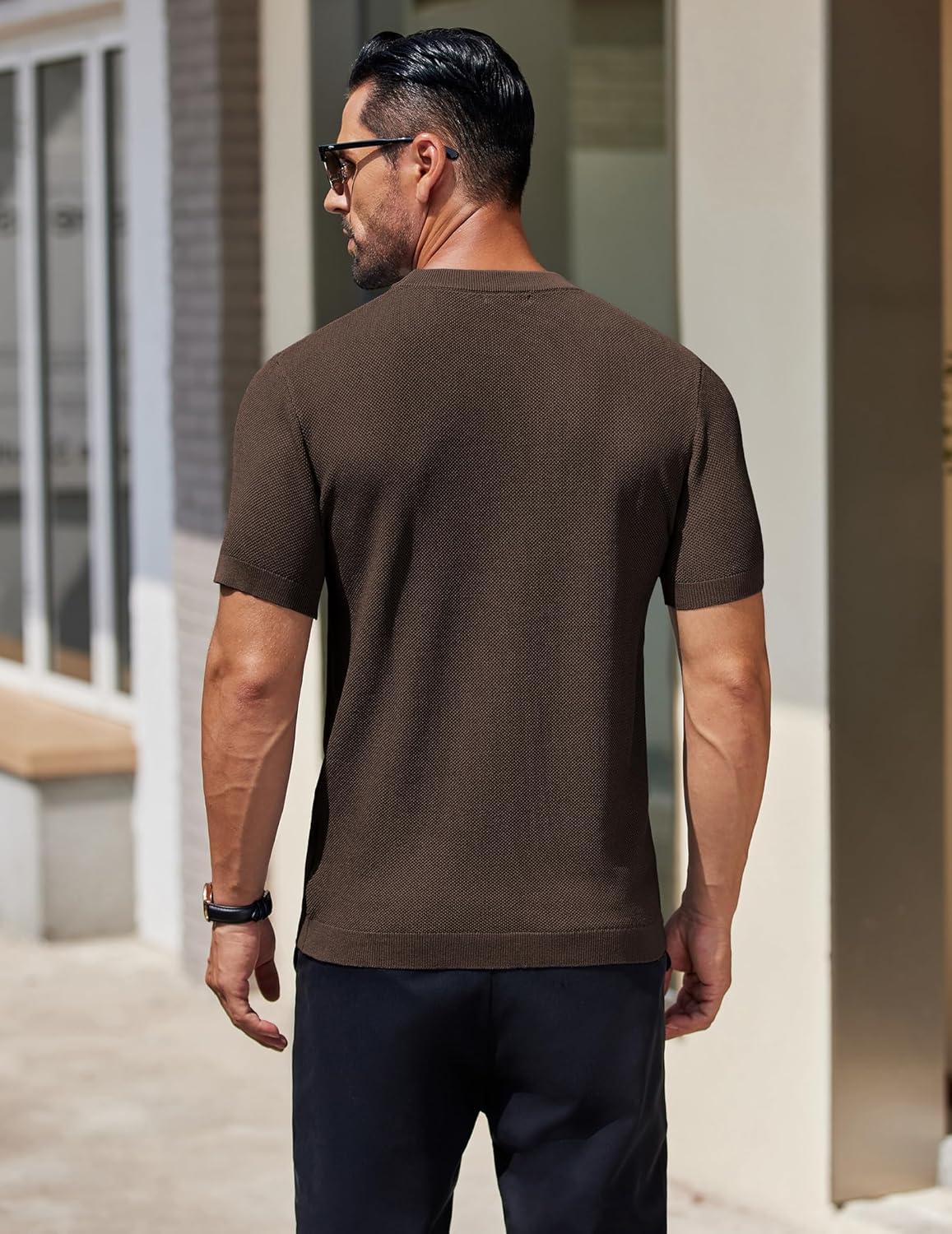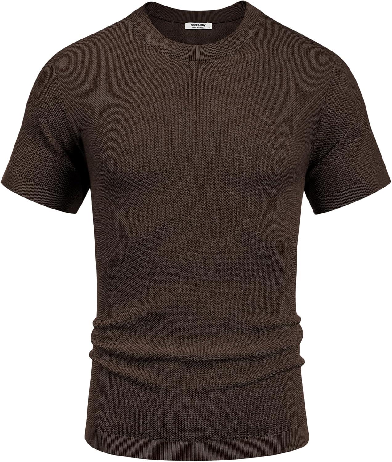 COOFANDY Men's Knit T-Shirts Short Sleeve Crewneck Shirt Casual Textured Pullover Tees(Coffee)