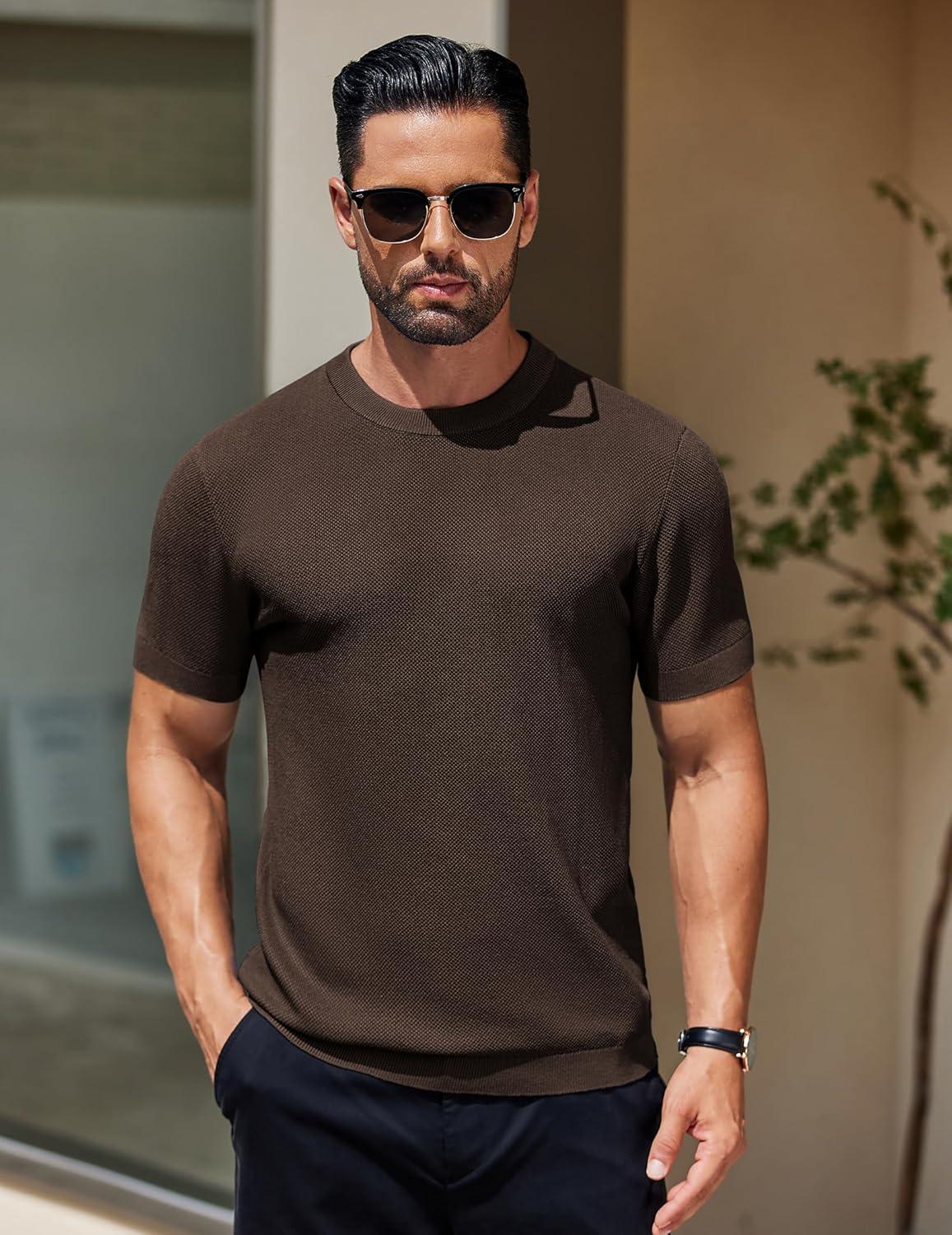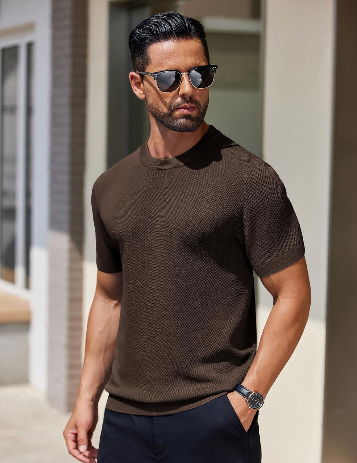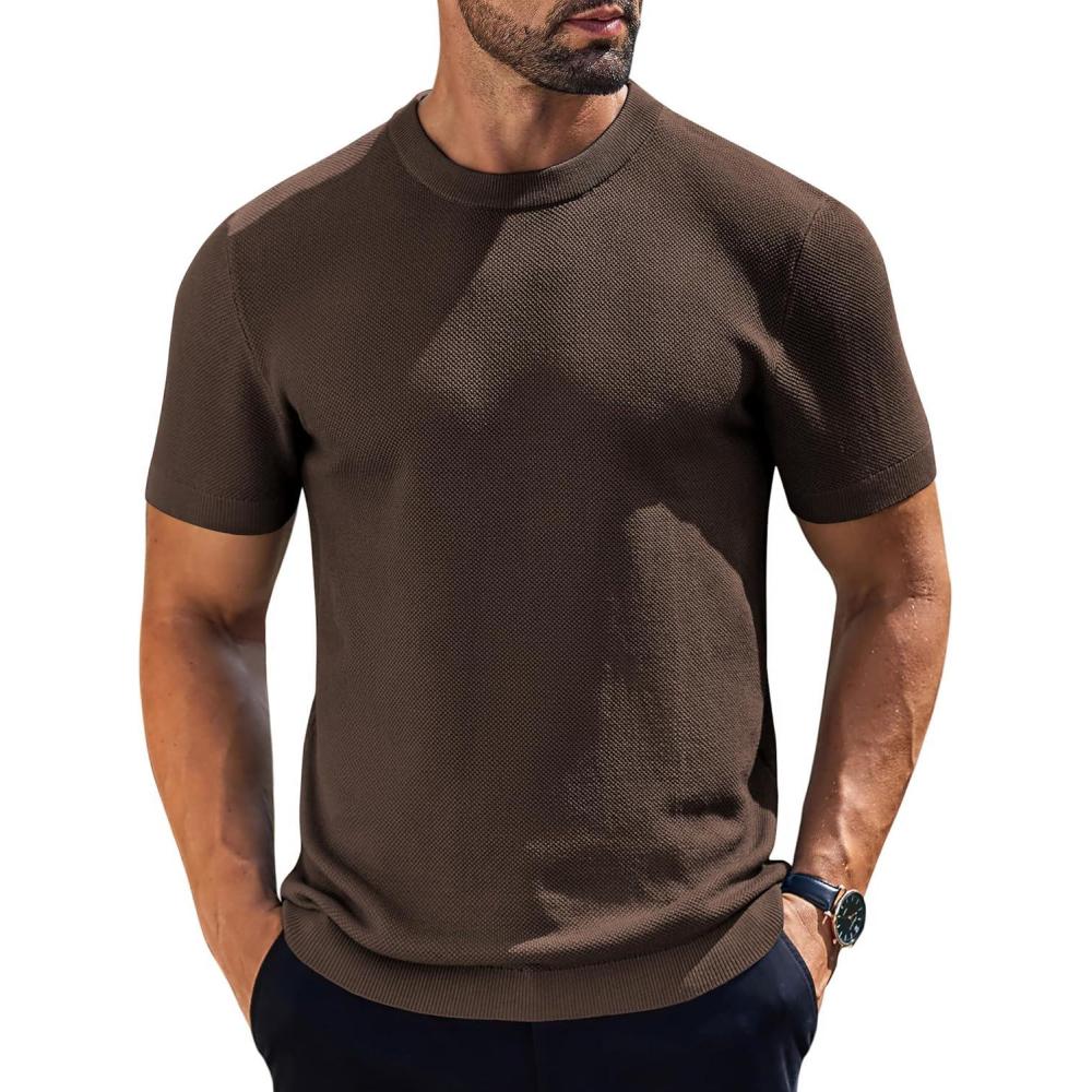 COOFANDY Men's Knit T-Shirts Short Sleeve Crewneck Shirt Casual Textured Pullover Tees(Coffee)