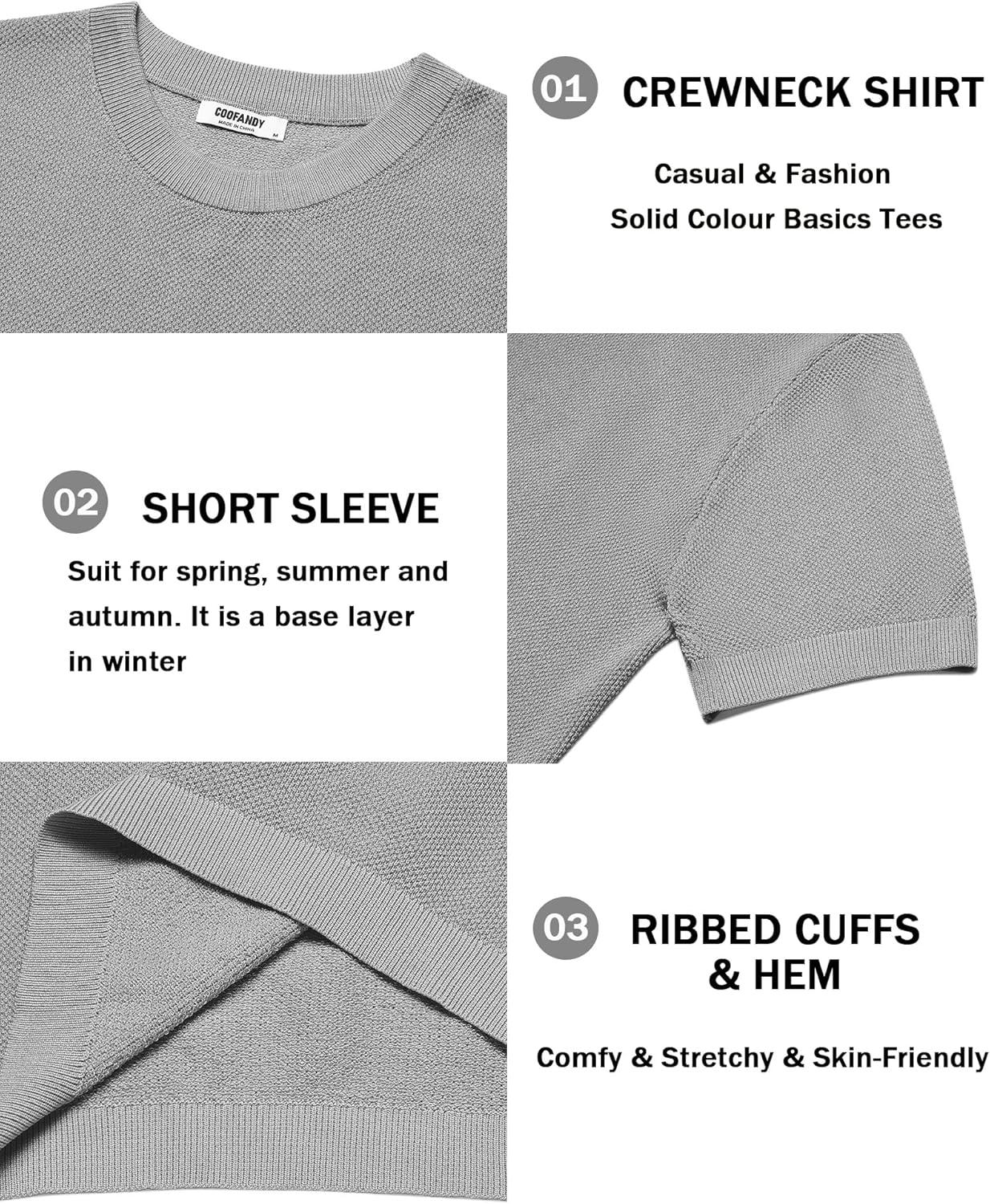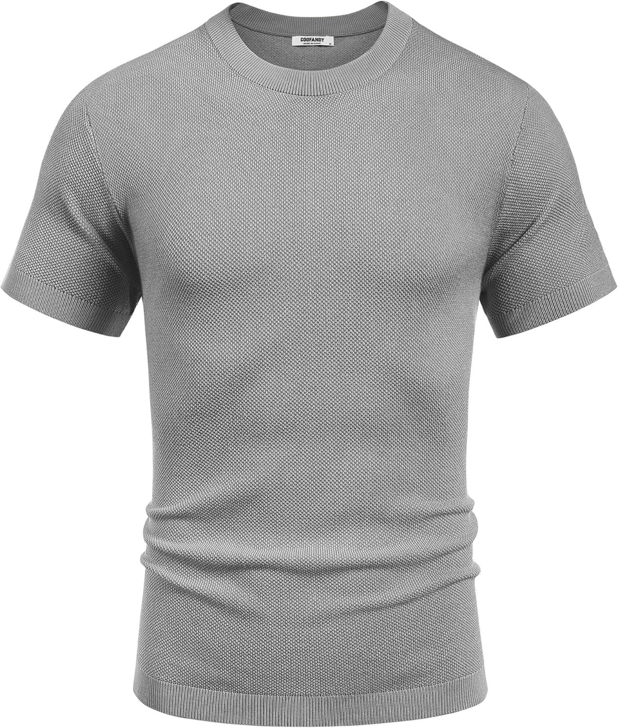 COOFANDY Men's Knit T-Shirts Short Sleeve Crewneck Shirt Casual Textured Pullover Tees(Light Grey)
