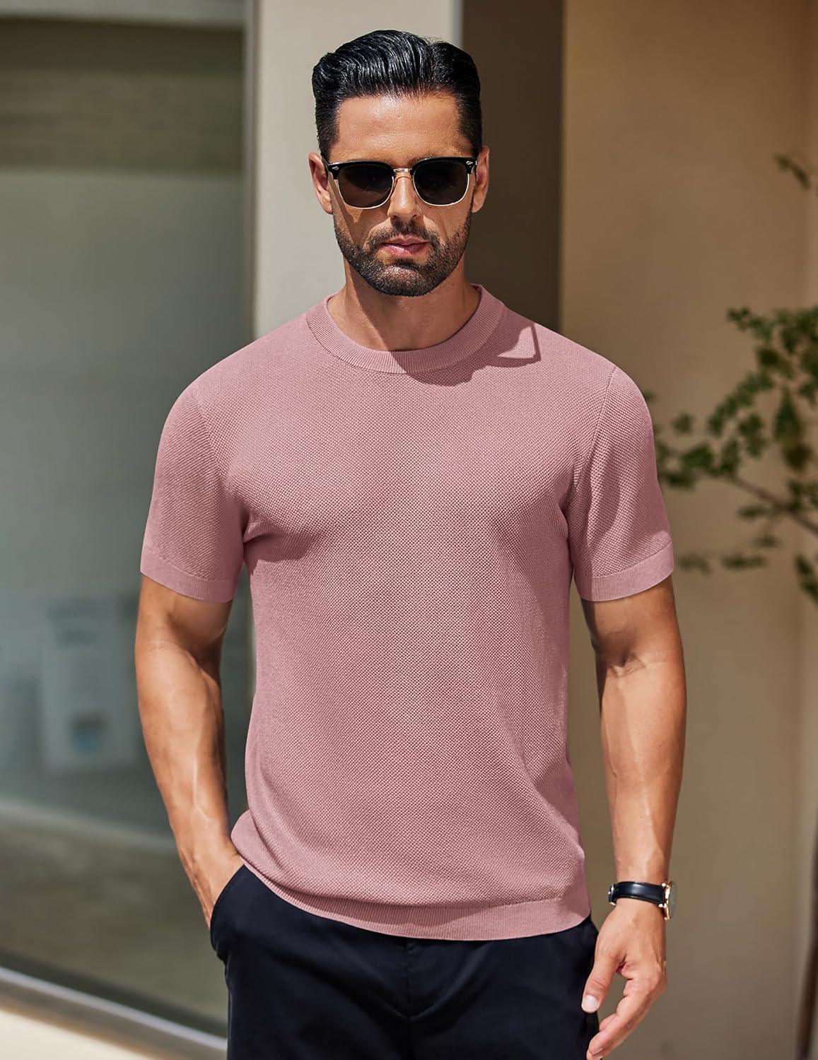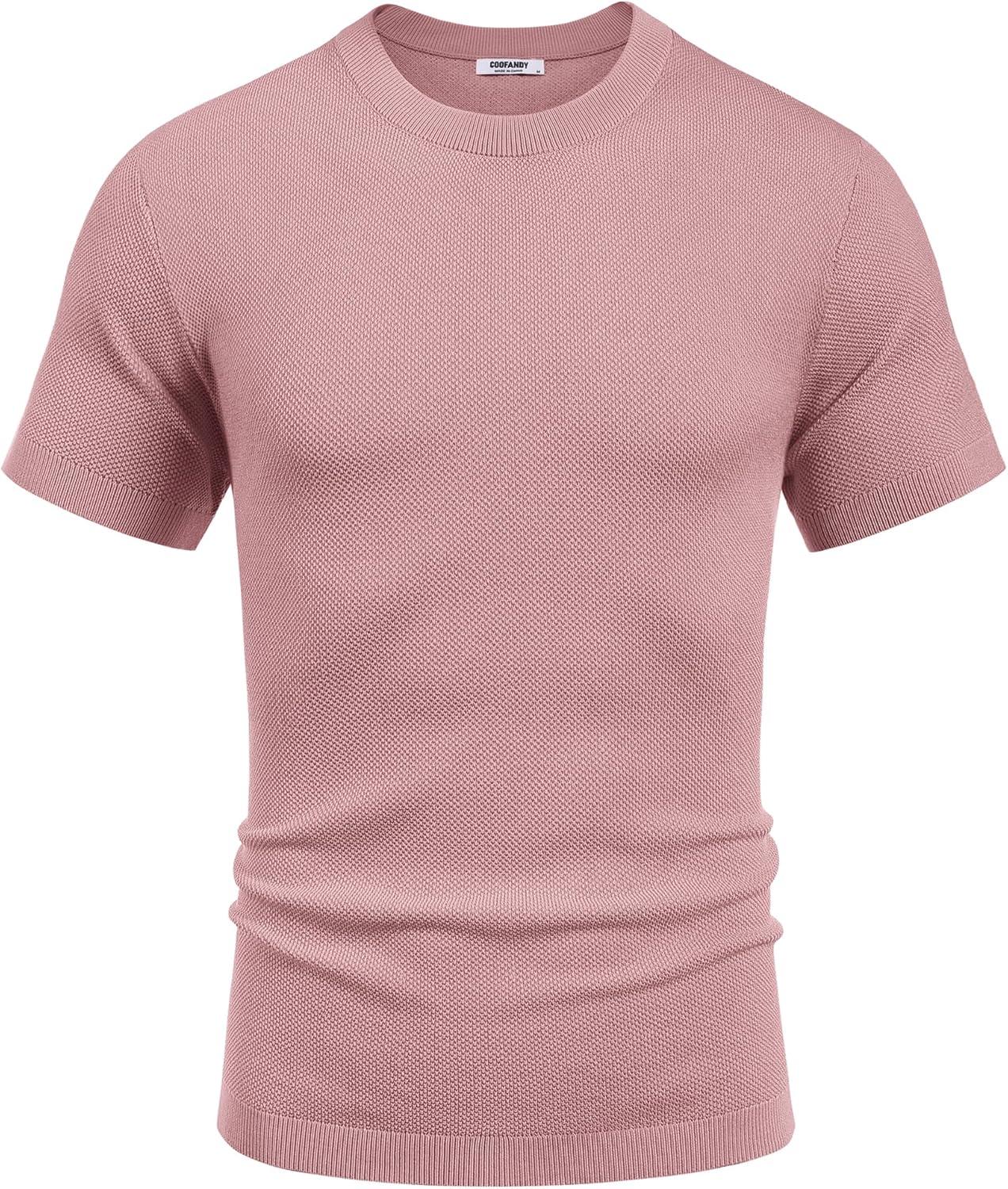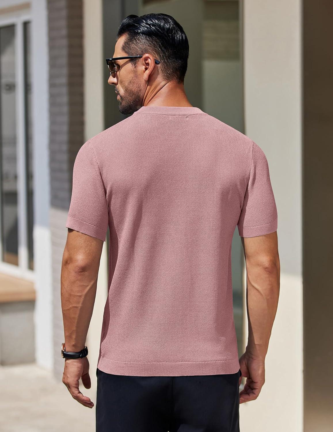 COOFANDY Men's Knit T-Shirts Short Sleeve Crewneck Shirt Casual Textured Pullover Tees(Pink)