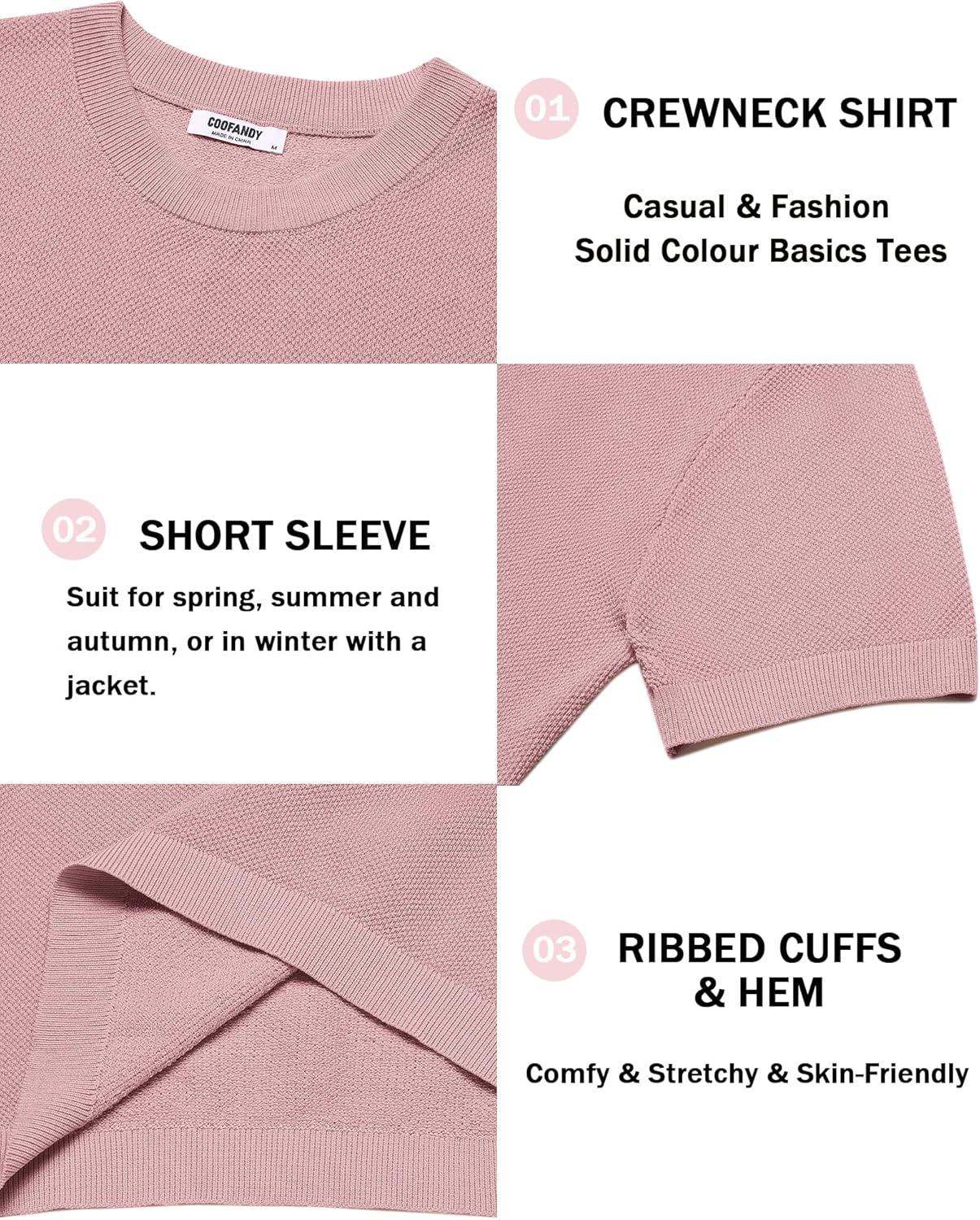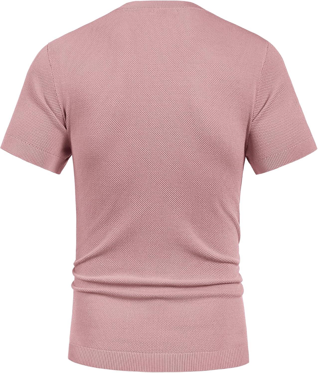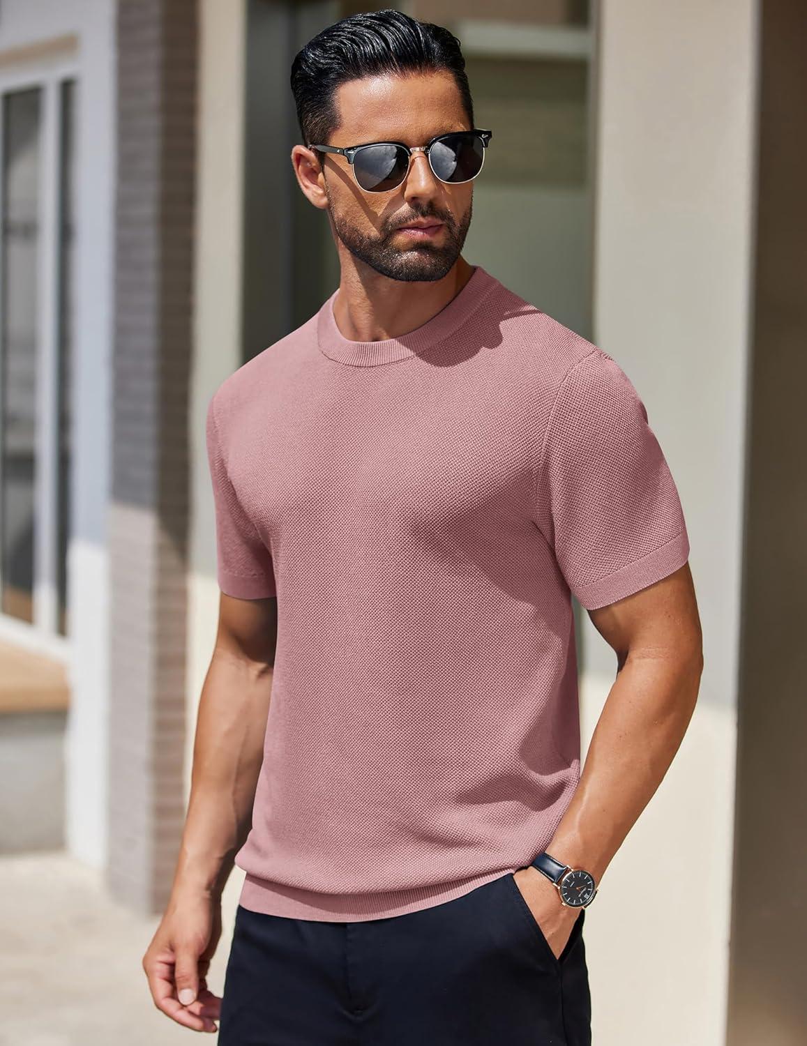 COOFANDY Men's Knit T-Shirts Short Sleeve Crewneck Shirt Casual Textured Pullover Tees(Pink)