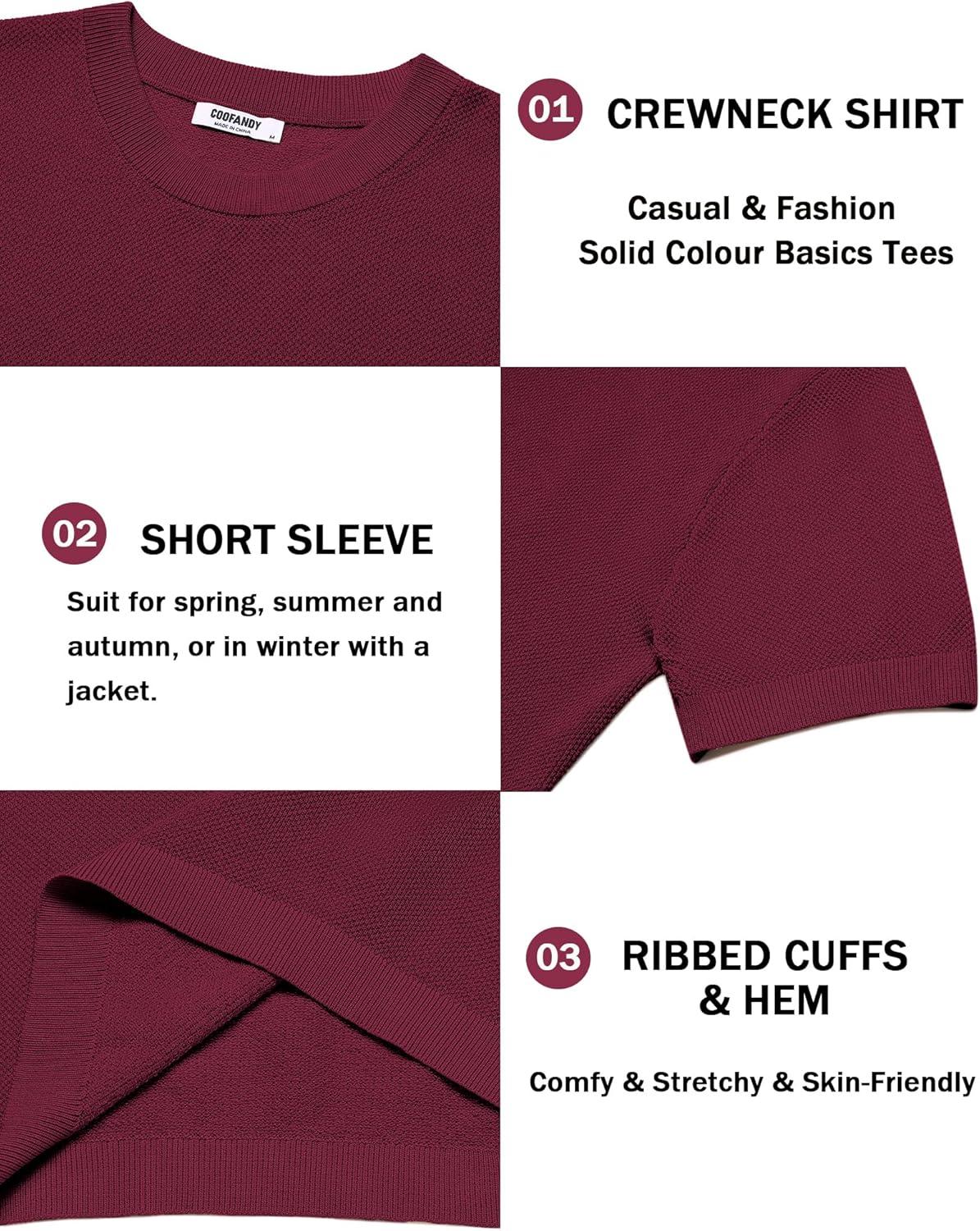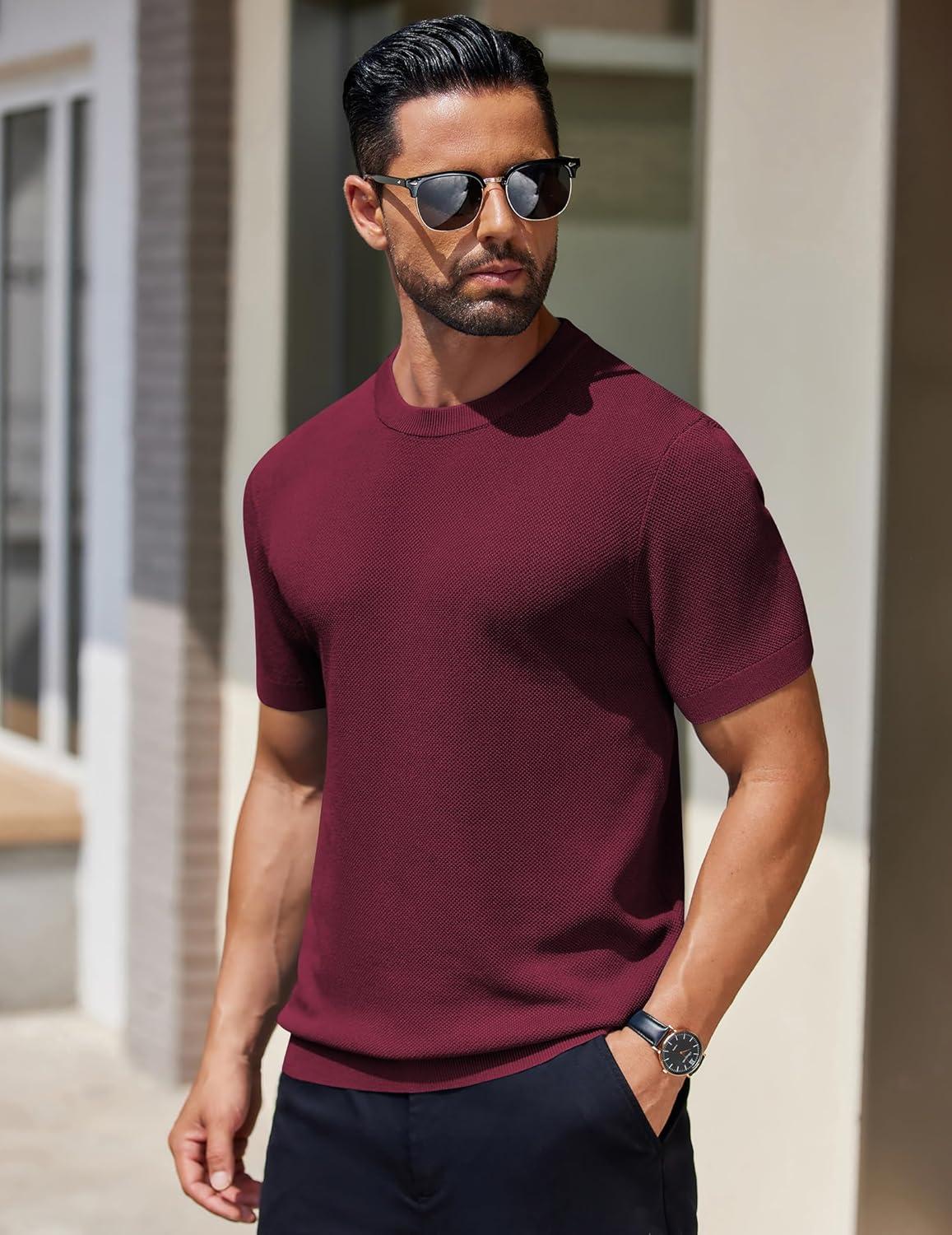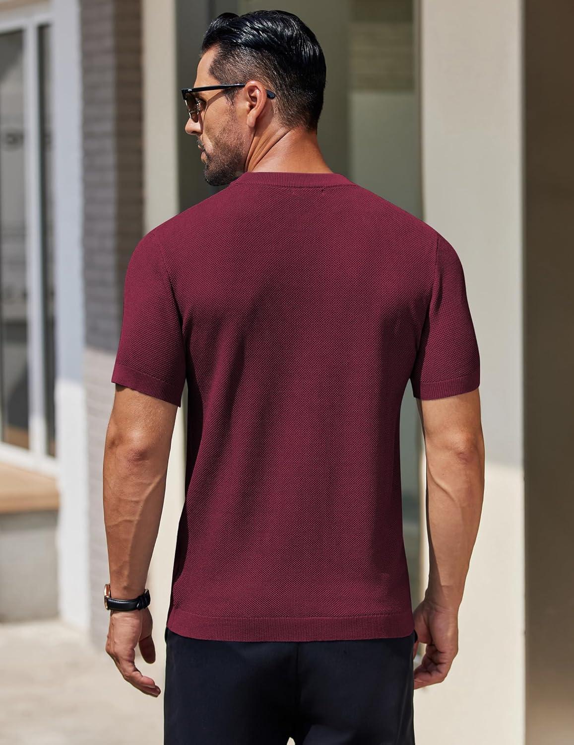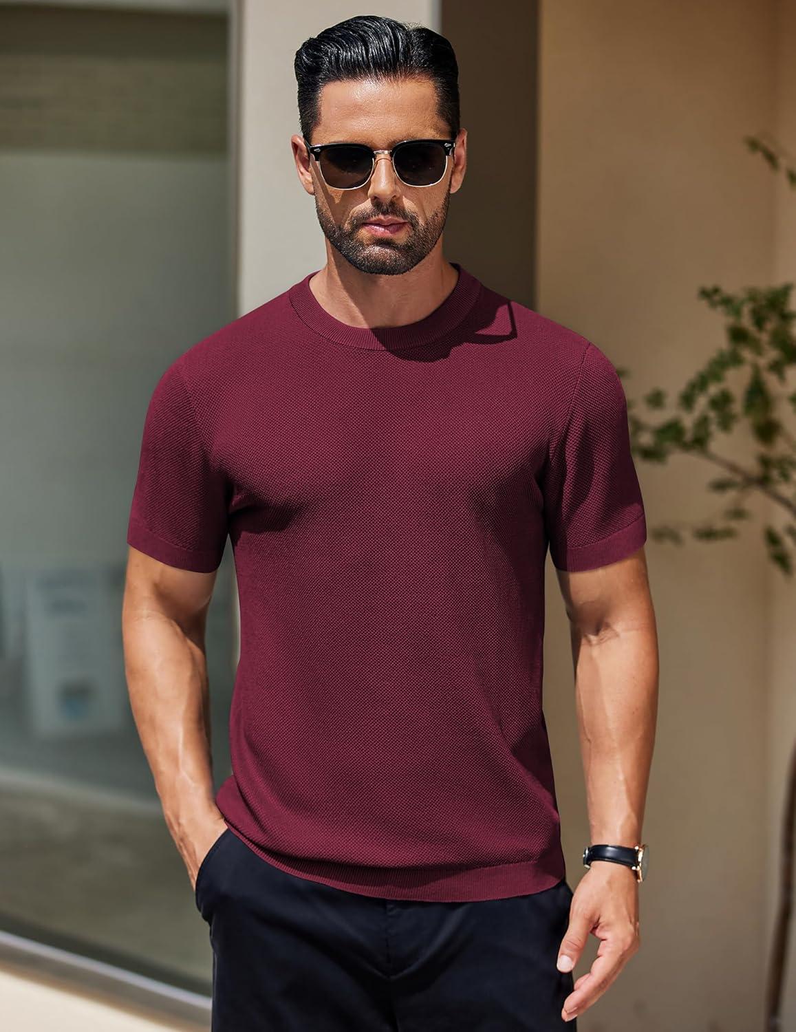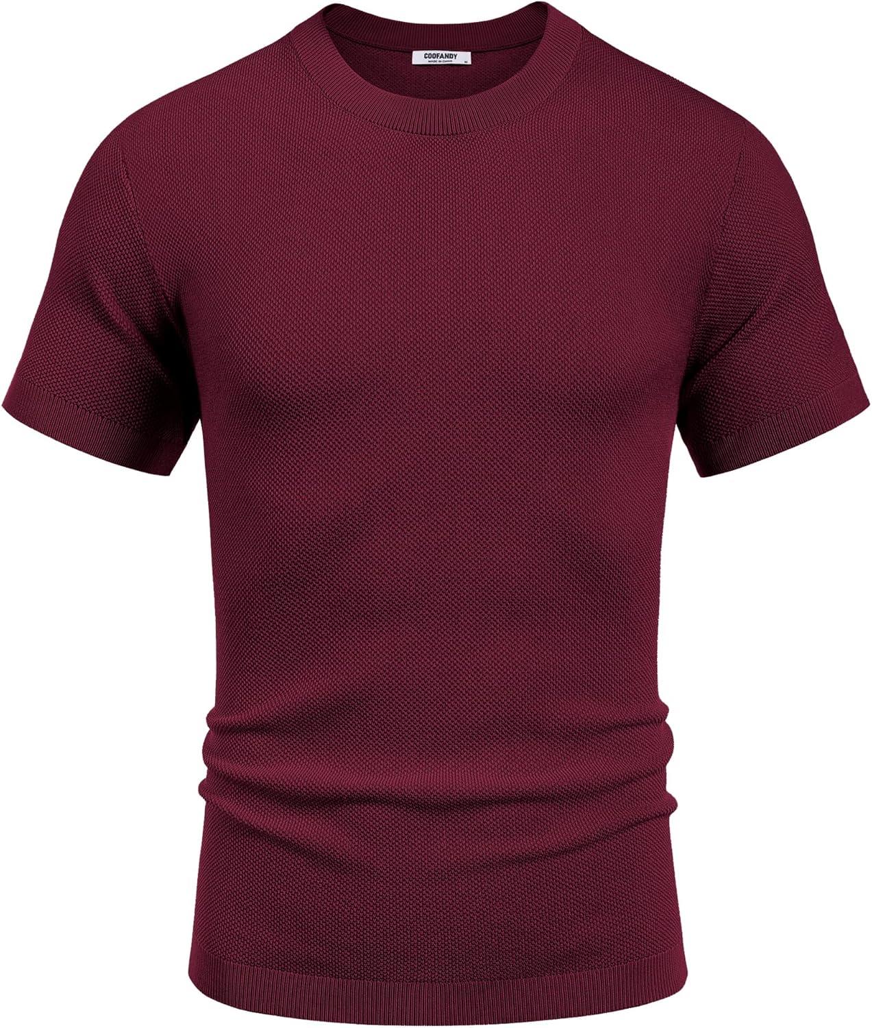 COOFANDY Men’s Knit T-Shirts Short Sleeve Crewneck Shirt Casual Textured Pullover Tees(Wine Red)