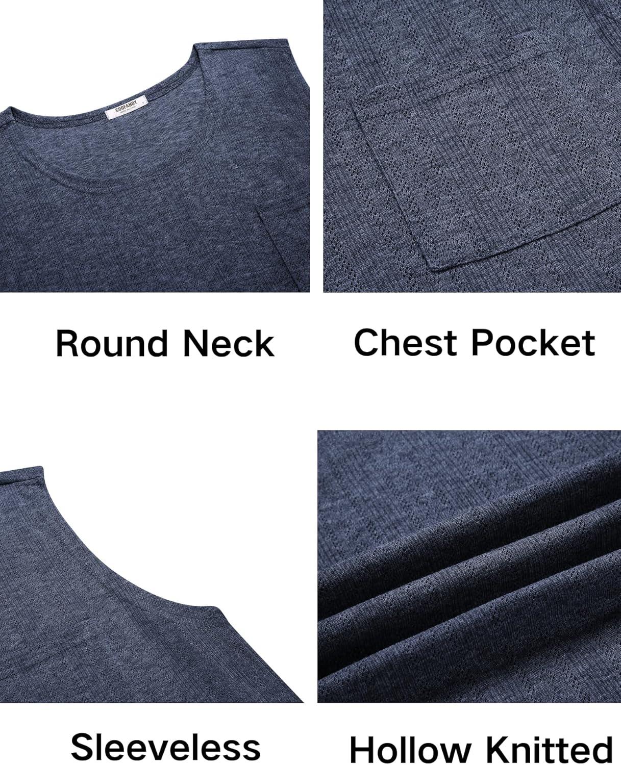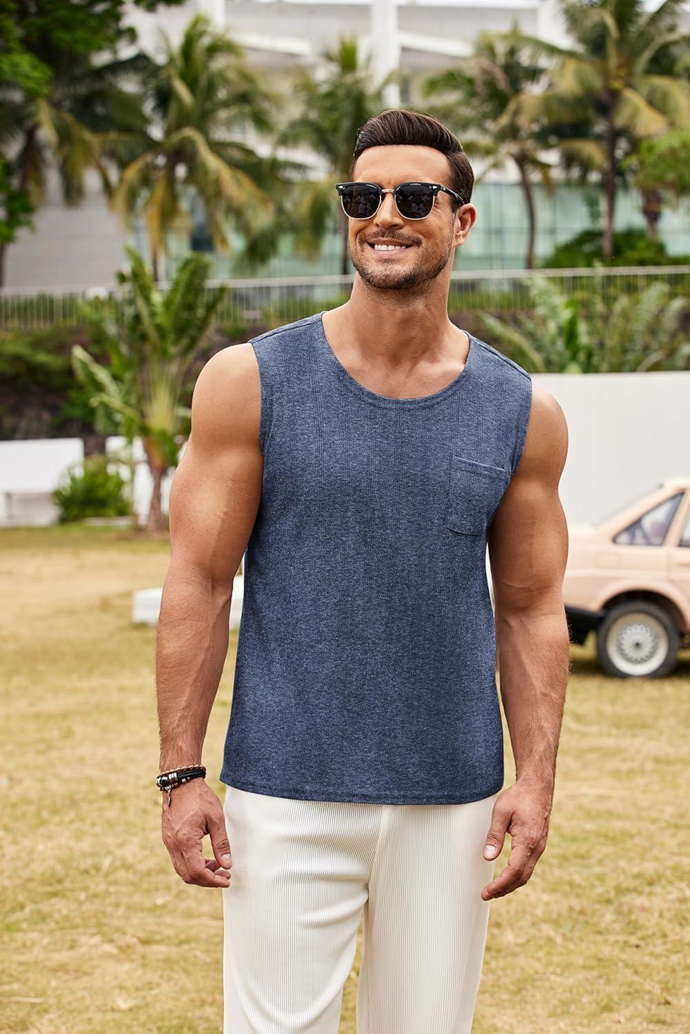 COOFANDY Men's Knit Tank Tops Casual Sleeveless T Shirts Beach Tank Shirts with Pocket(Navy)