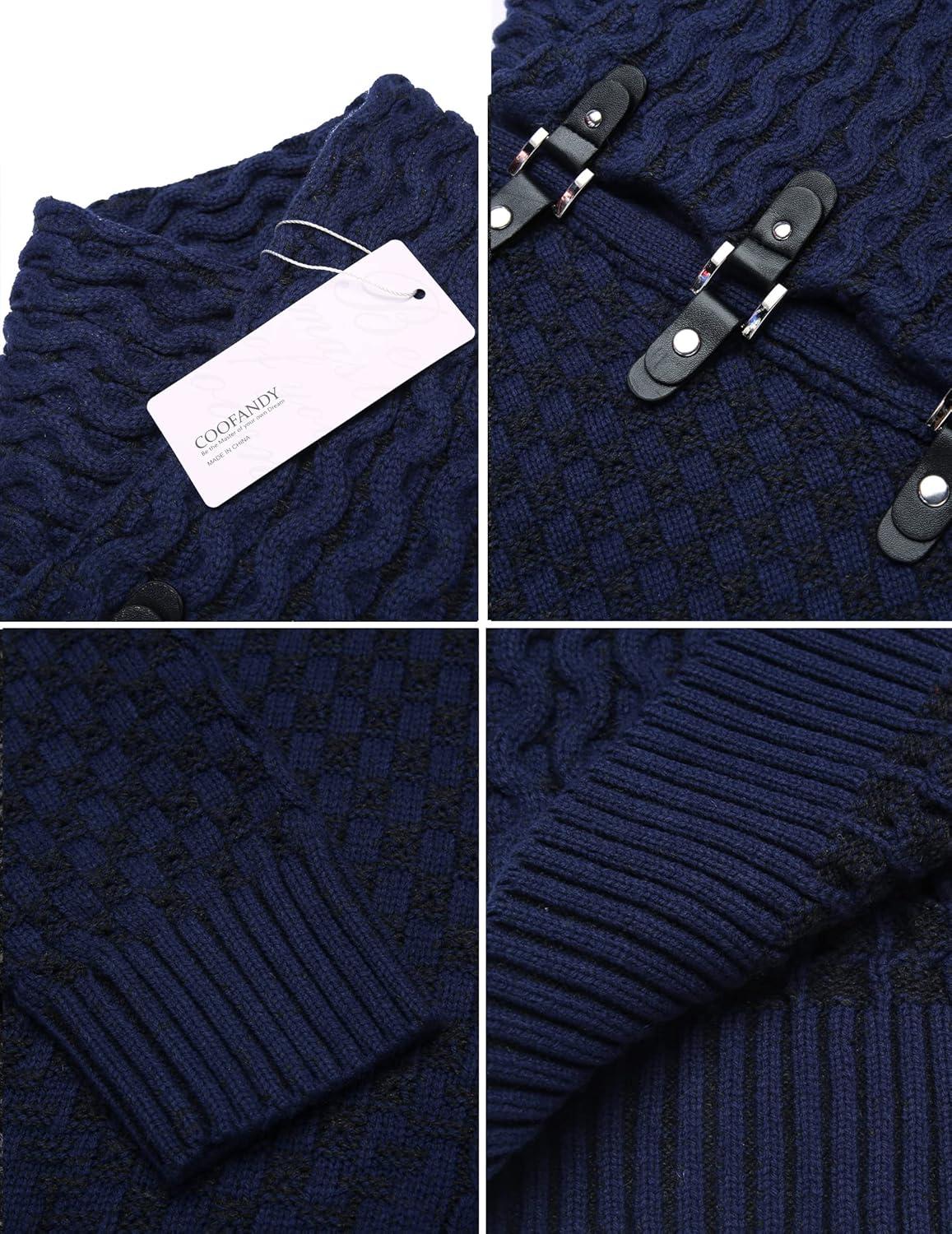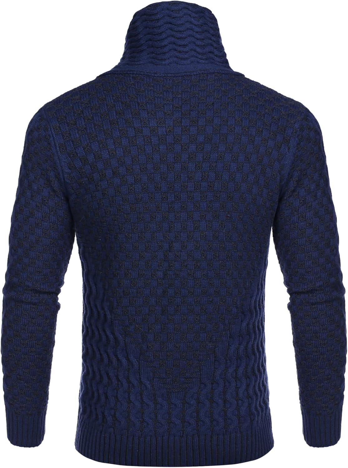 COOFANDY Men's Knitted Turtleneck Sweater Long Sleeve Slim Fit Designer Shawl Collar Pullover(A- Navy Blue)