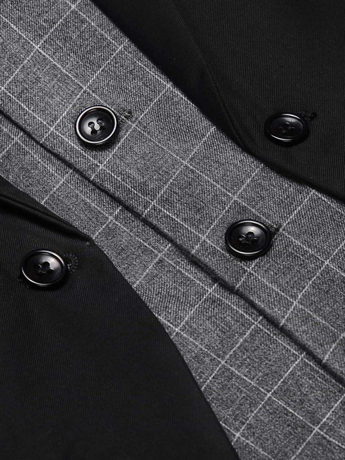 COOFANDY Men's Layered Suit Vest Business Dress Vests Formal Wedding Waistcoat Slim Fit(Black Plaid)