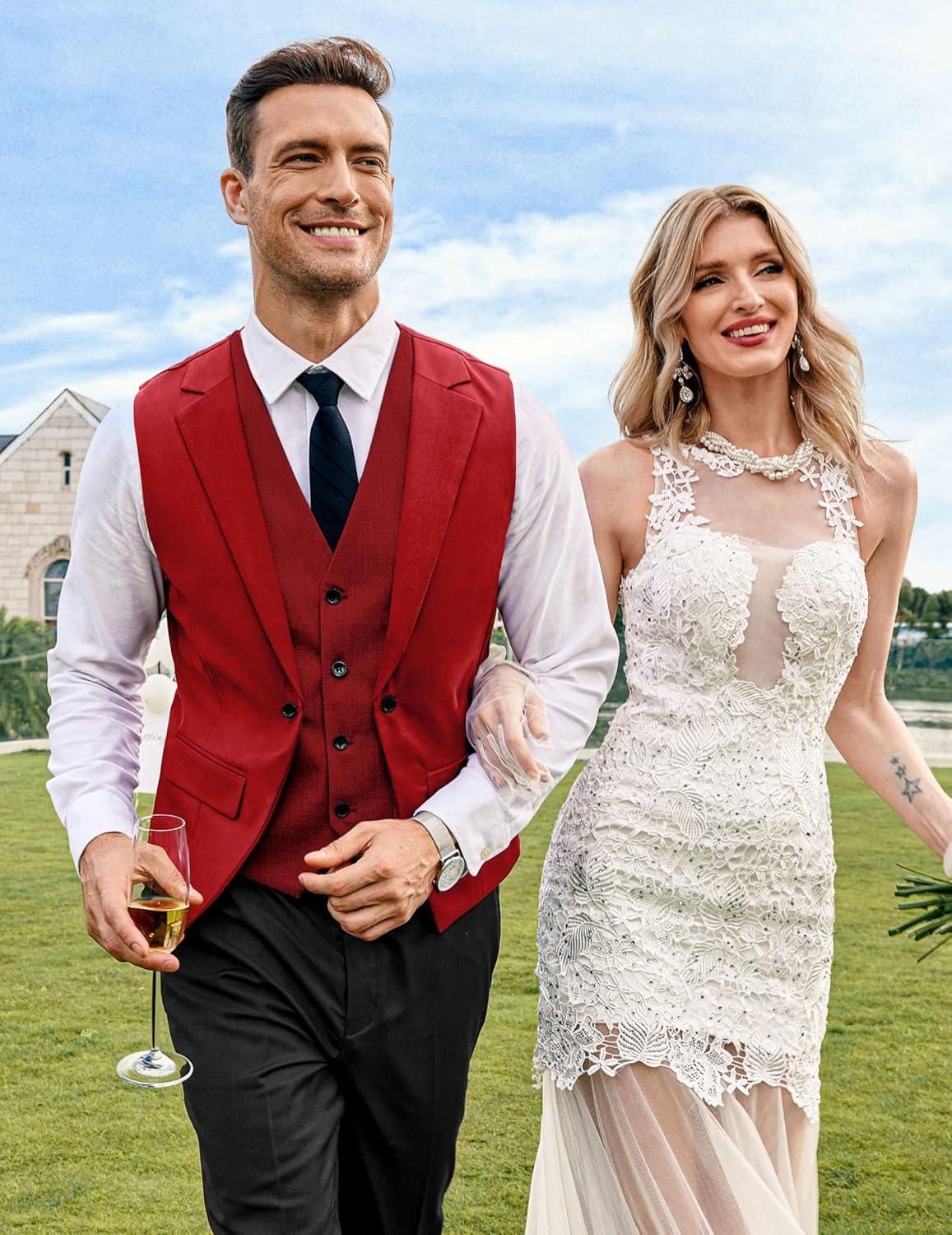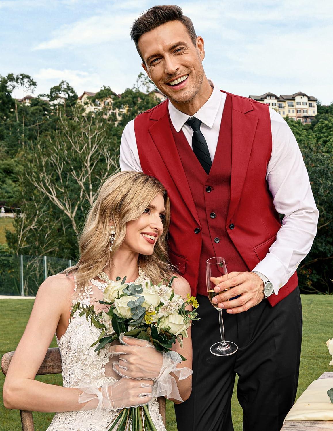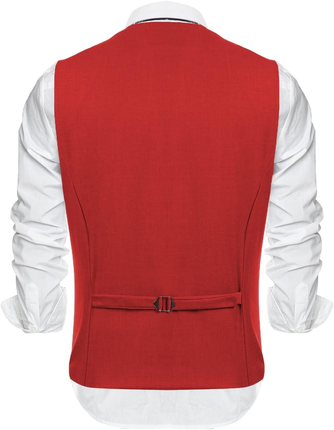 COOFANDY Men's Layered Suit Vest Business Dress Vests Formal Wedding Waistcoat Slim Fit(Red)