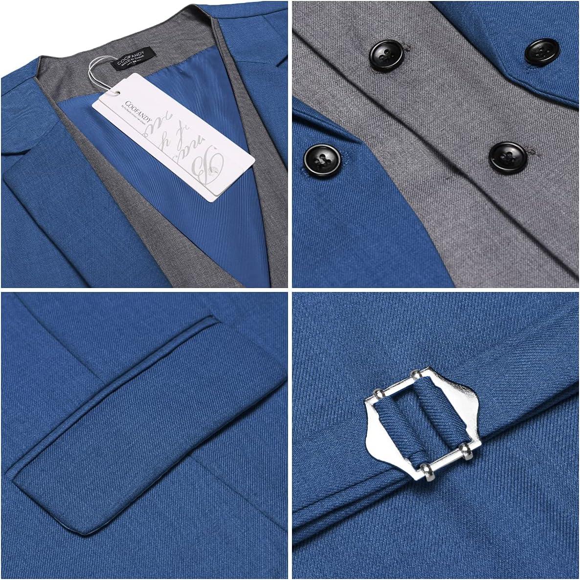 COOFANDY Men’s Layered Suit Vest Business Dress Vests Formal Wedding Waistcoat Slim Fit(Royal Blue)
