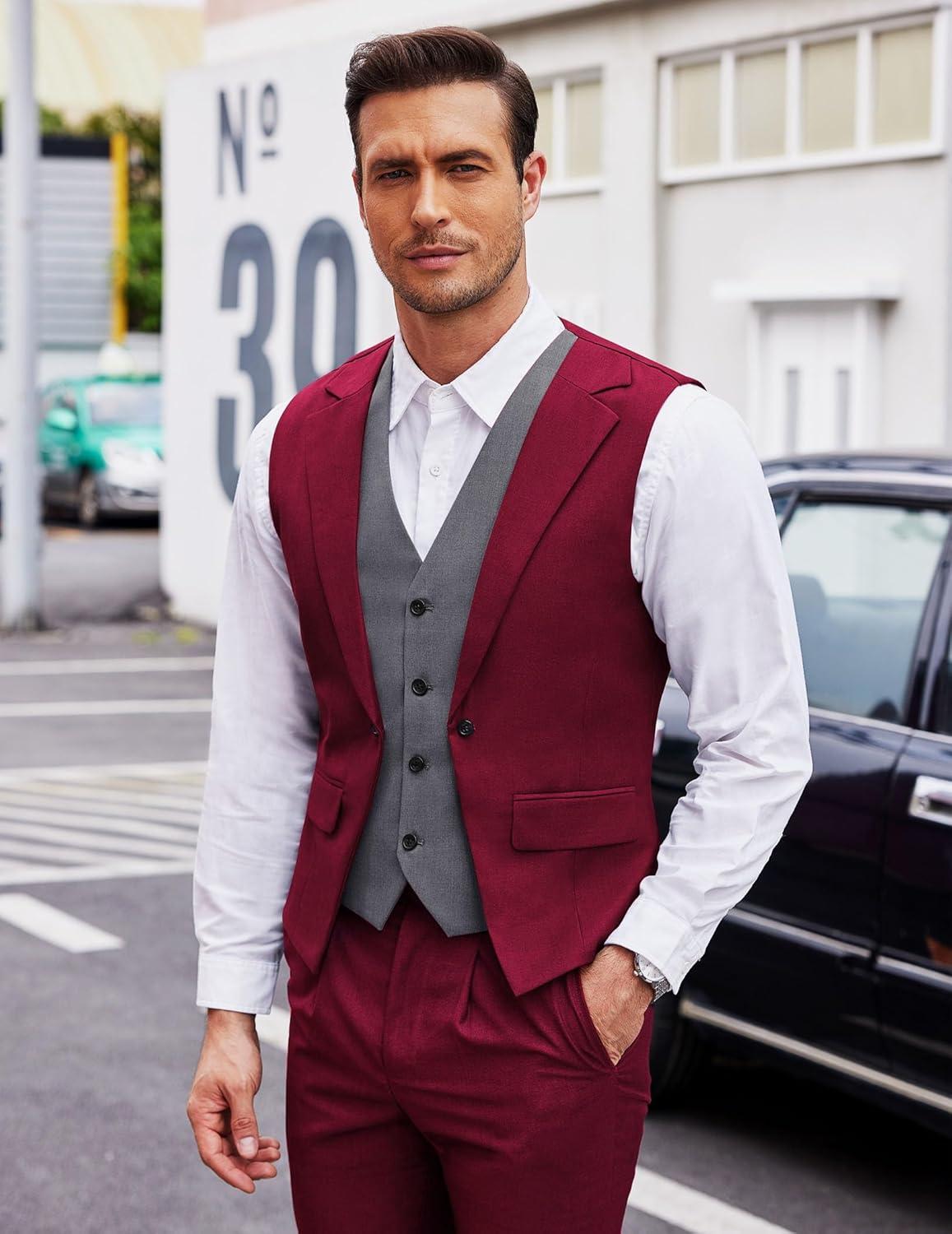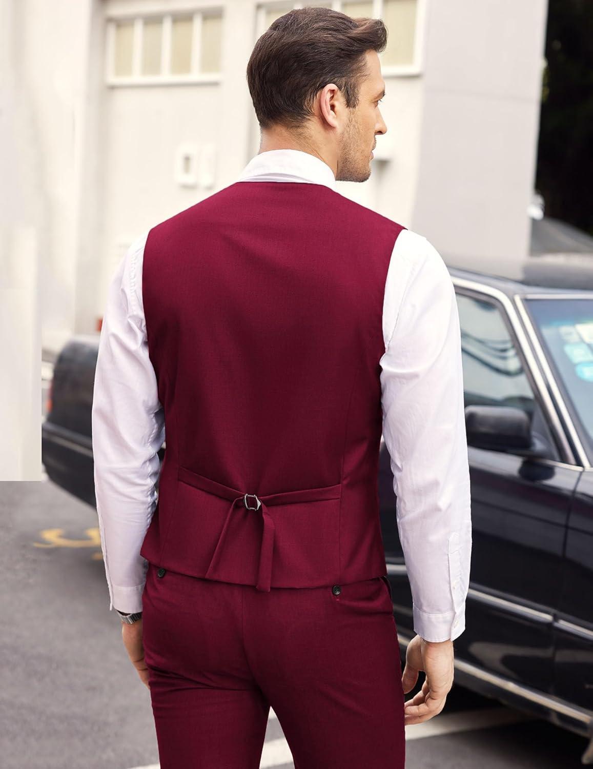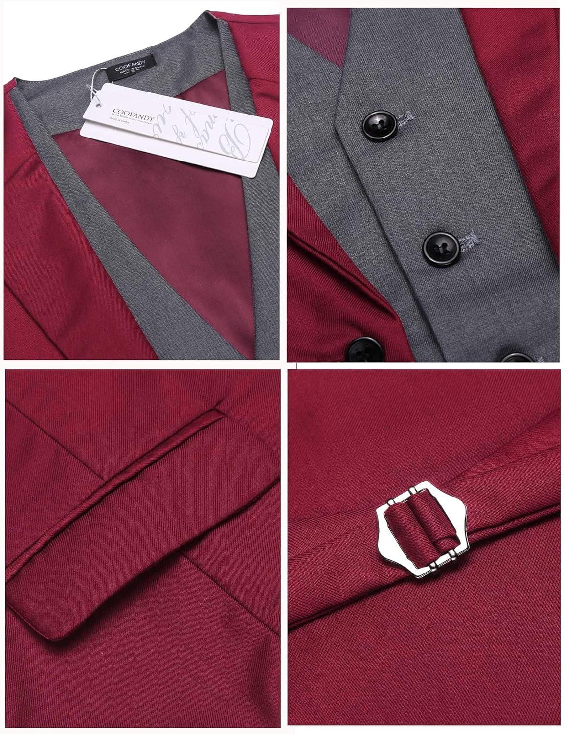 COOFANDY Men's Layered Suit Vest Business Dress Vests Formal Wedding Waistcoat Slim Fit(Wine Red)