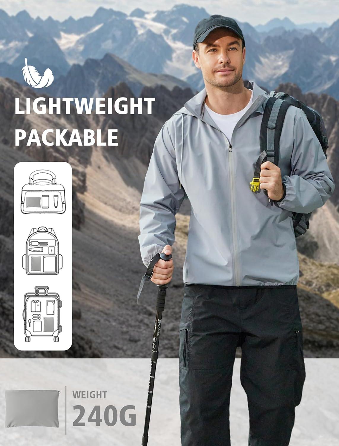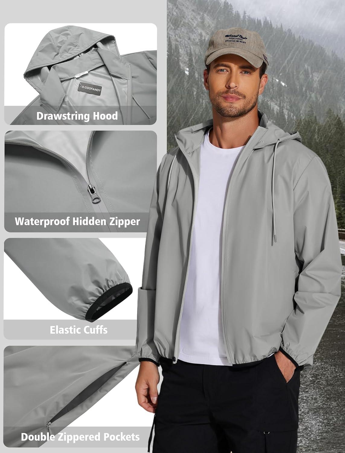 COOFANDY Men's Light Rain Jacket with Hood Packable Waterproof Raincoat Golf Rain Gear Travel Hiking Windbreaker(Gray)