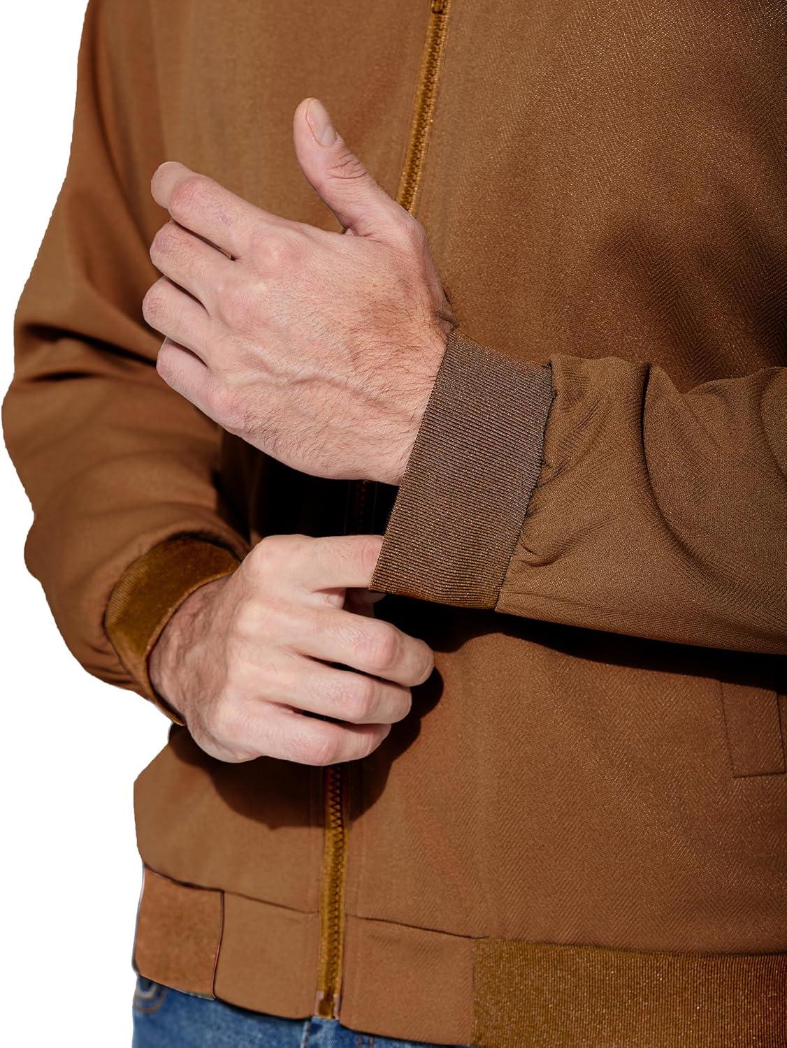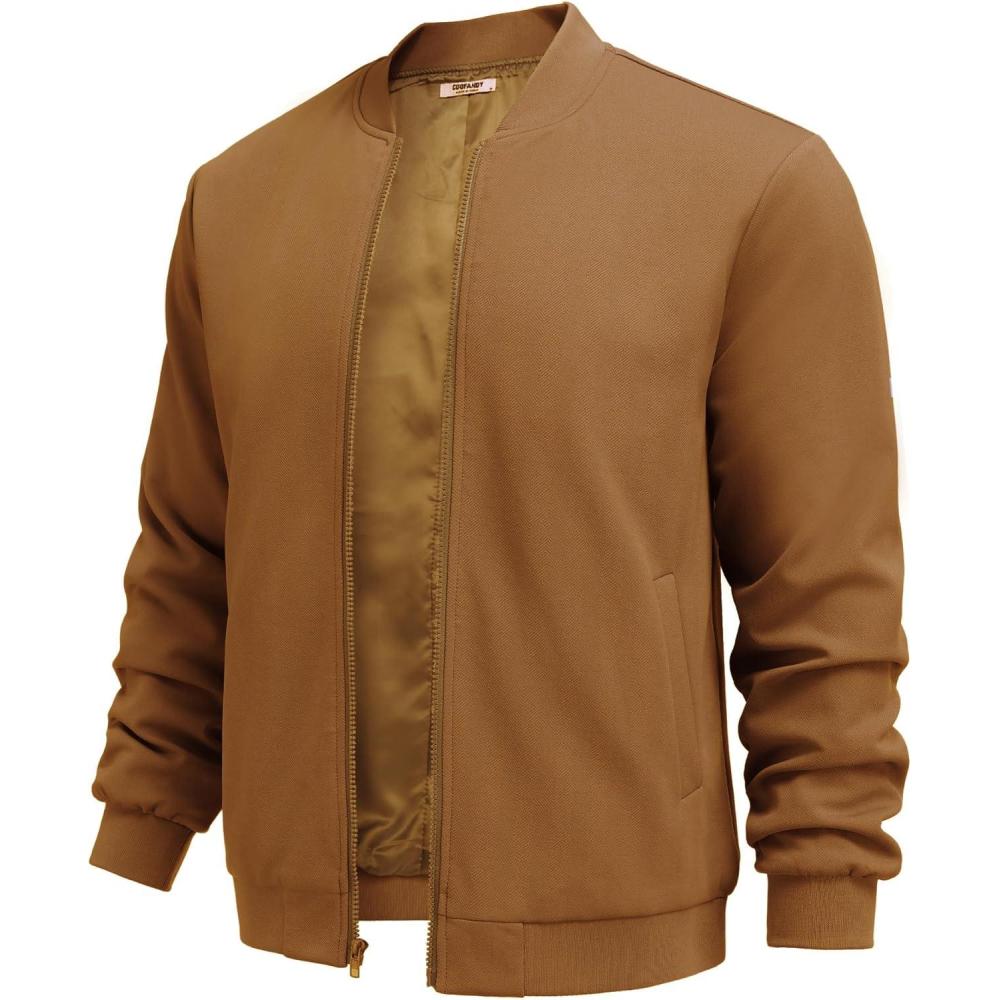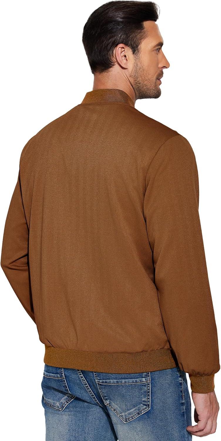 COOFANDY Men's Lightweight Bomber Jacket Casual Stylish Fall Jackets Full Zip Knit Jackets Varsity Textured Coat(Brown)