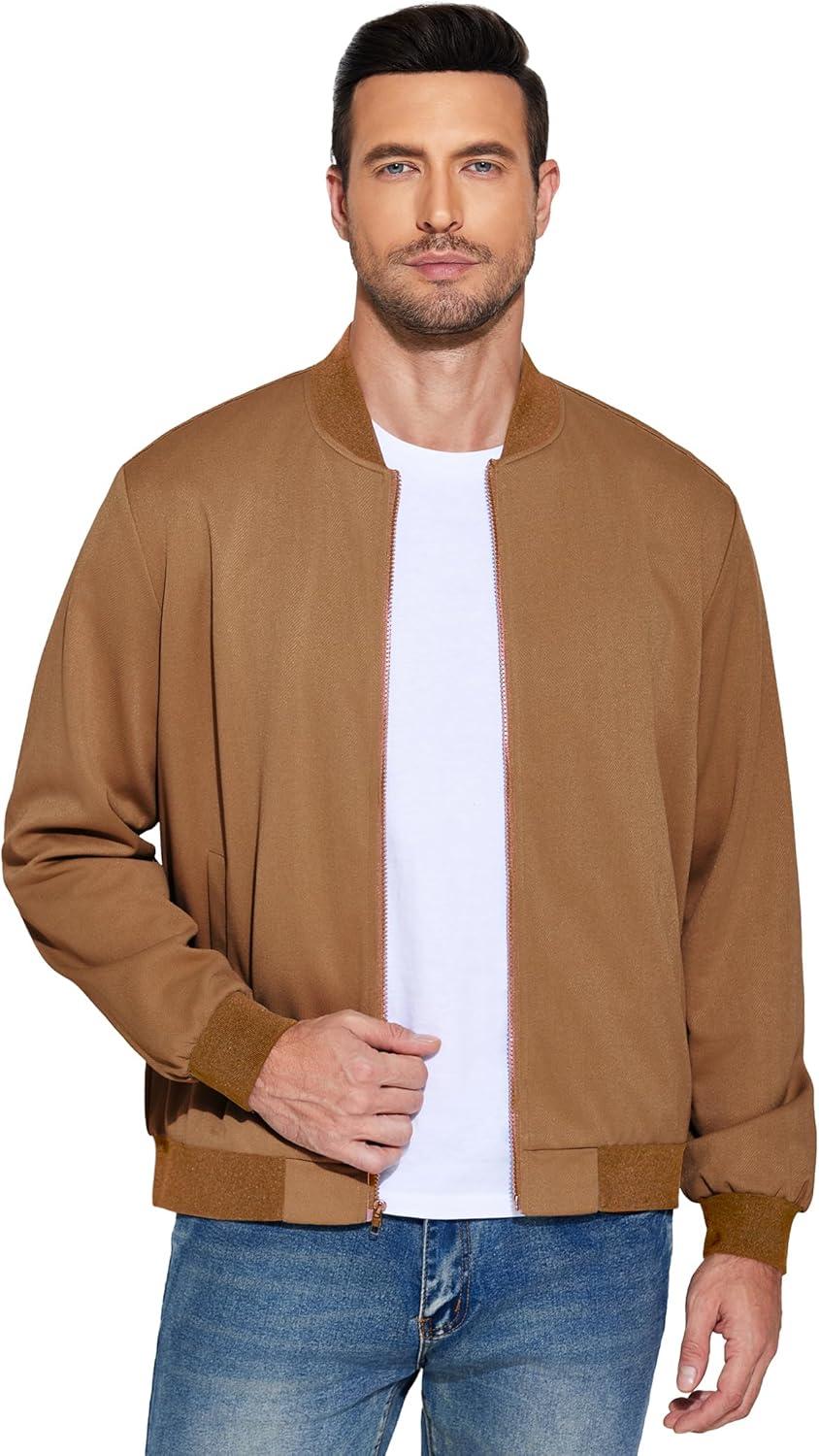 Product Name:COOFANDY Men's Lightweight Bomber Jacket Casual Zip Up Jacket Varsity Coat Textured Jacket