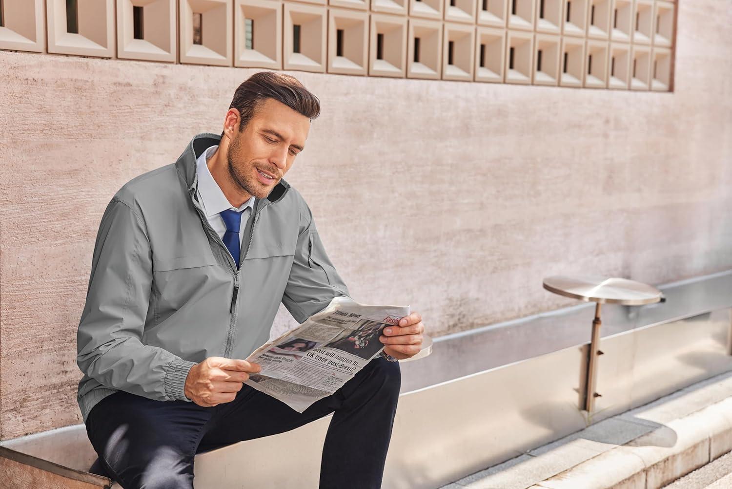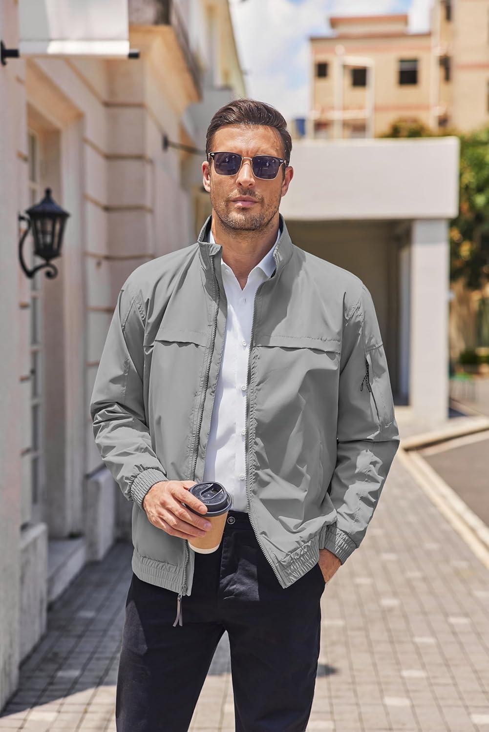 COOFANDY Mens Lightweight Bomber Jackets Stand Collar Windbreaker Softshell Jacket Zip Up Coat for Fall Outdoor(Light Gray)
