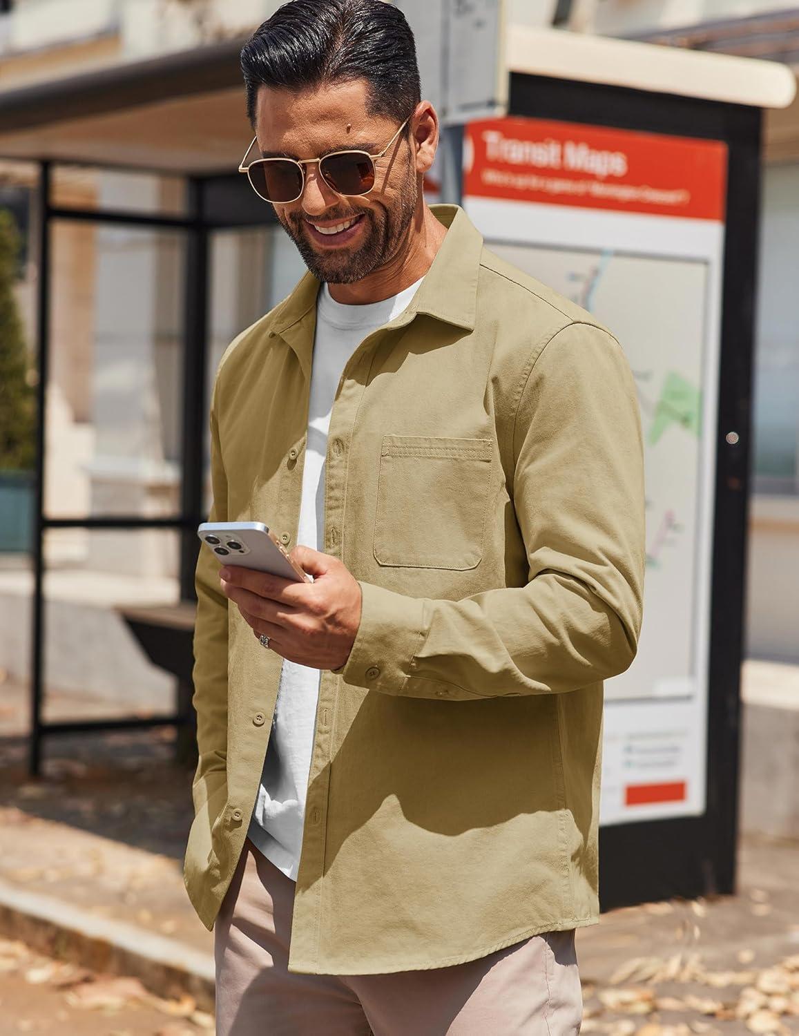 COOFANDY Mens Lightweight Button Down Shirt Jacket Casual Shacket Overshirt(Khaki)