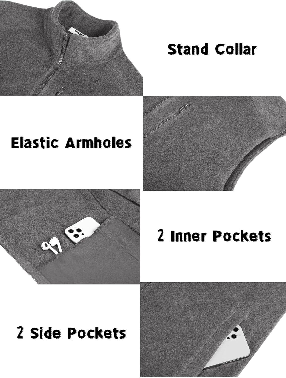 COOFANDY Men’s Lightweight Fleece Vest Sleeveless Zip Up Warm Jacket Casual Outerwear Vests With Pockets(Grey)