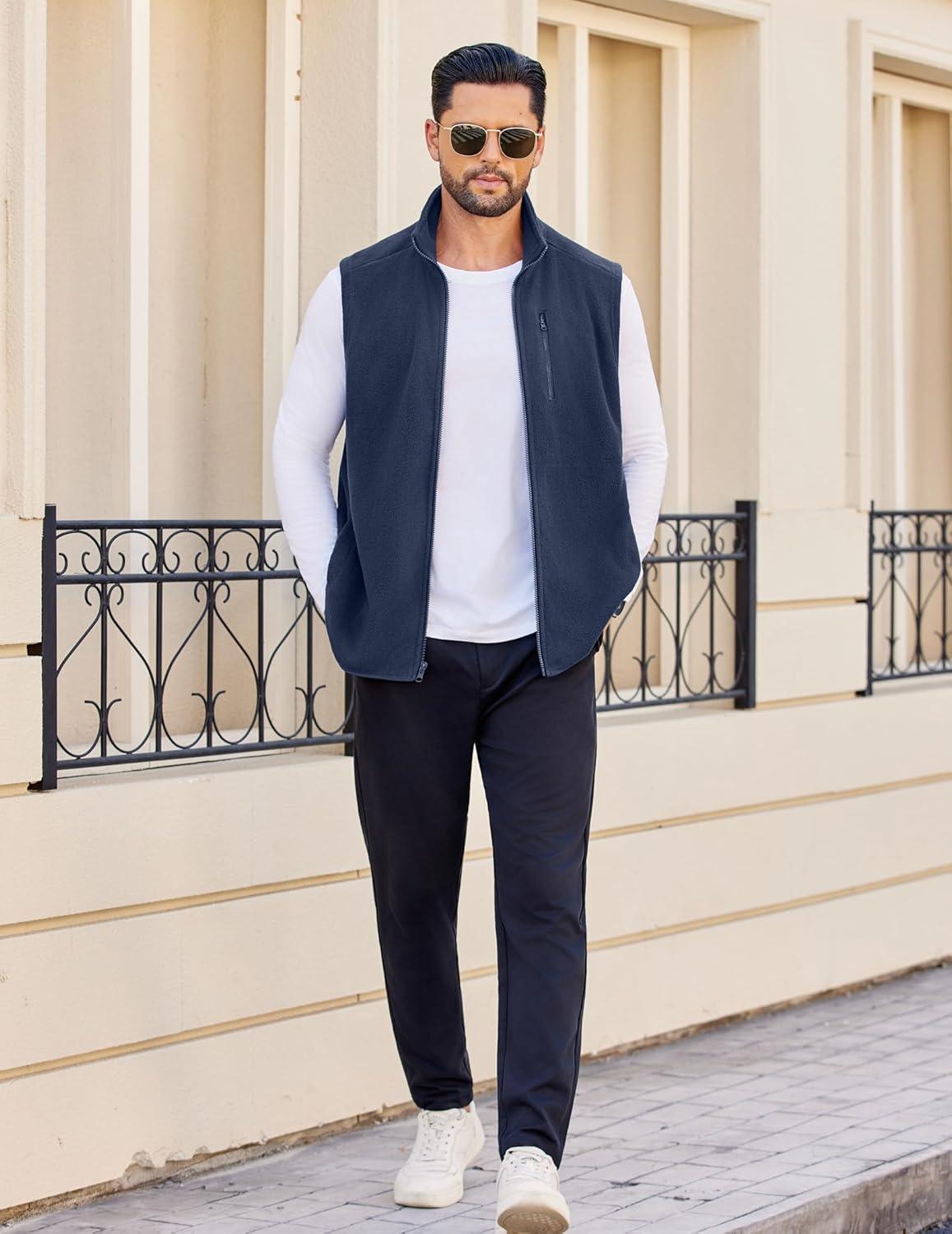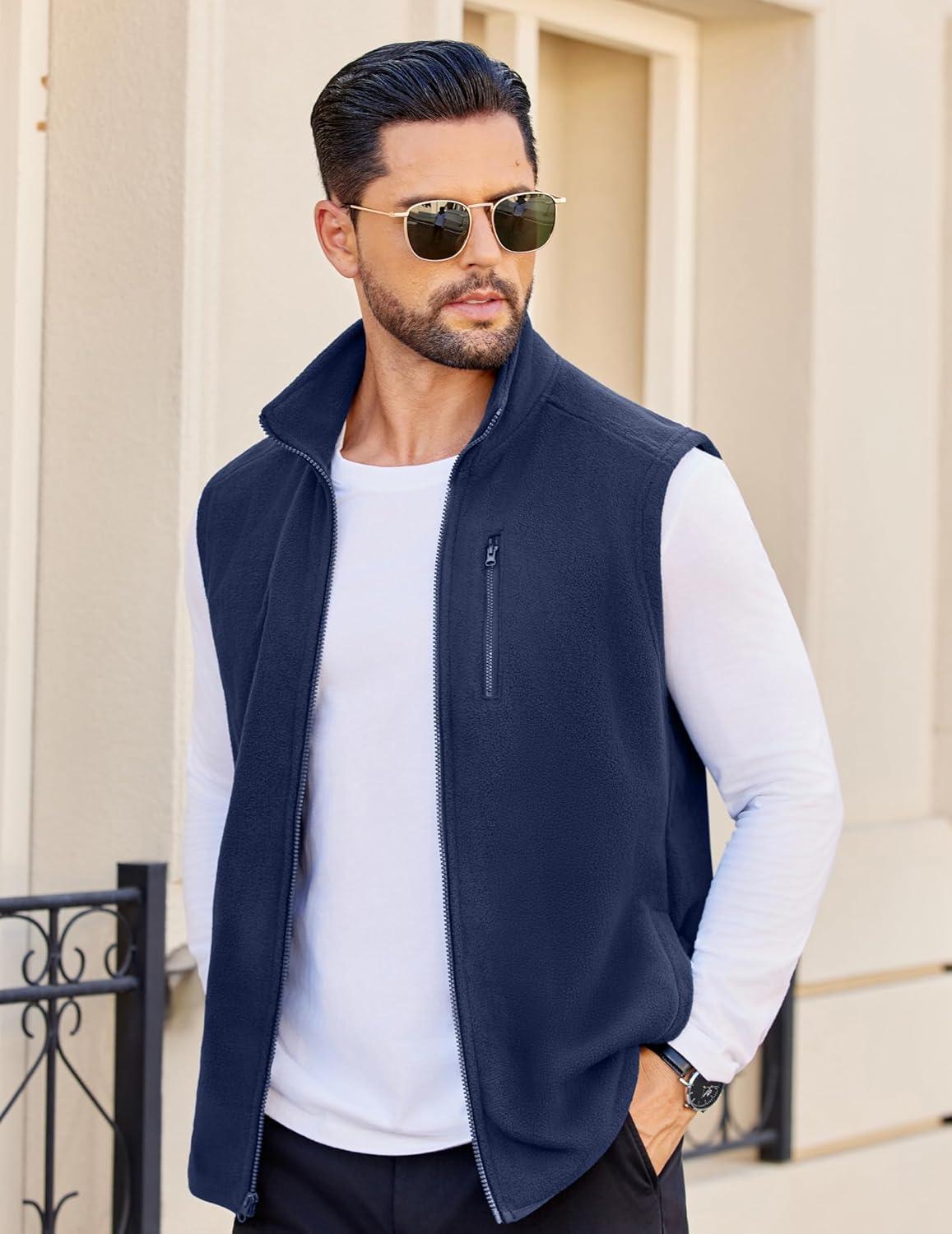 COOFANDY Men’s Lightweight Fleece Vest Sleeveless Zip Up Warm Jacket Casual Outerwear Vests With Pockets(Ocean Blue)