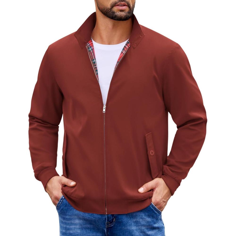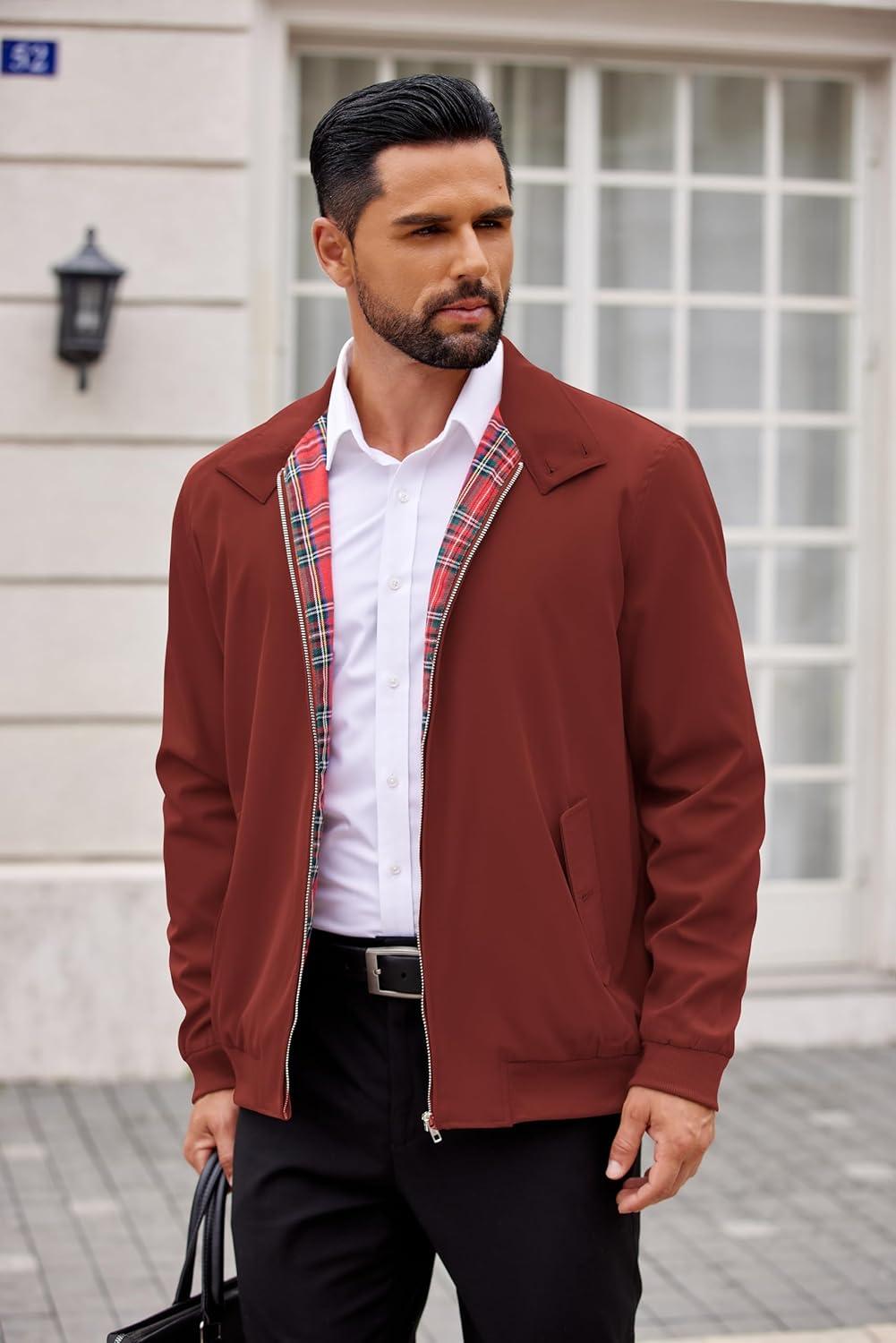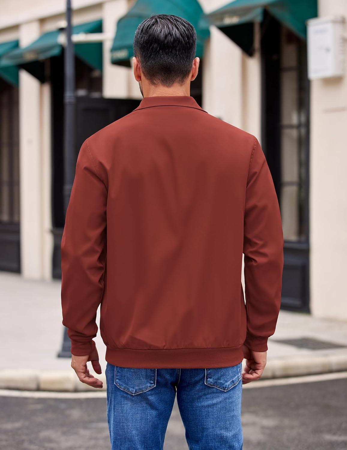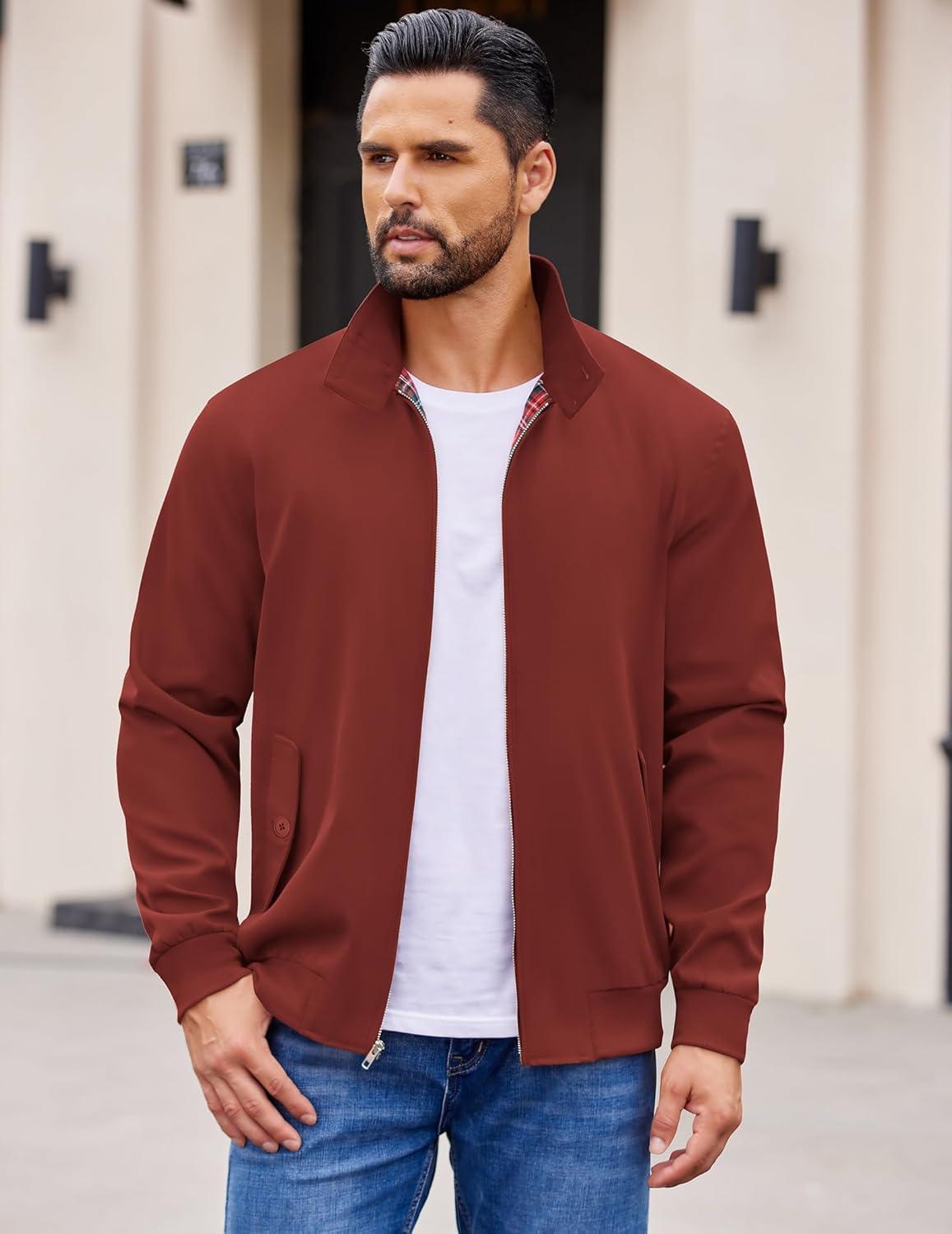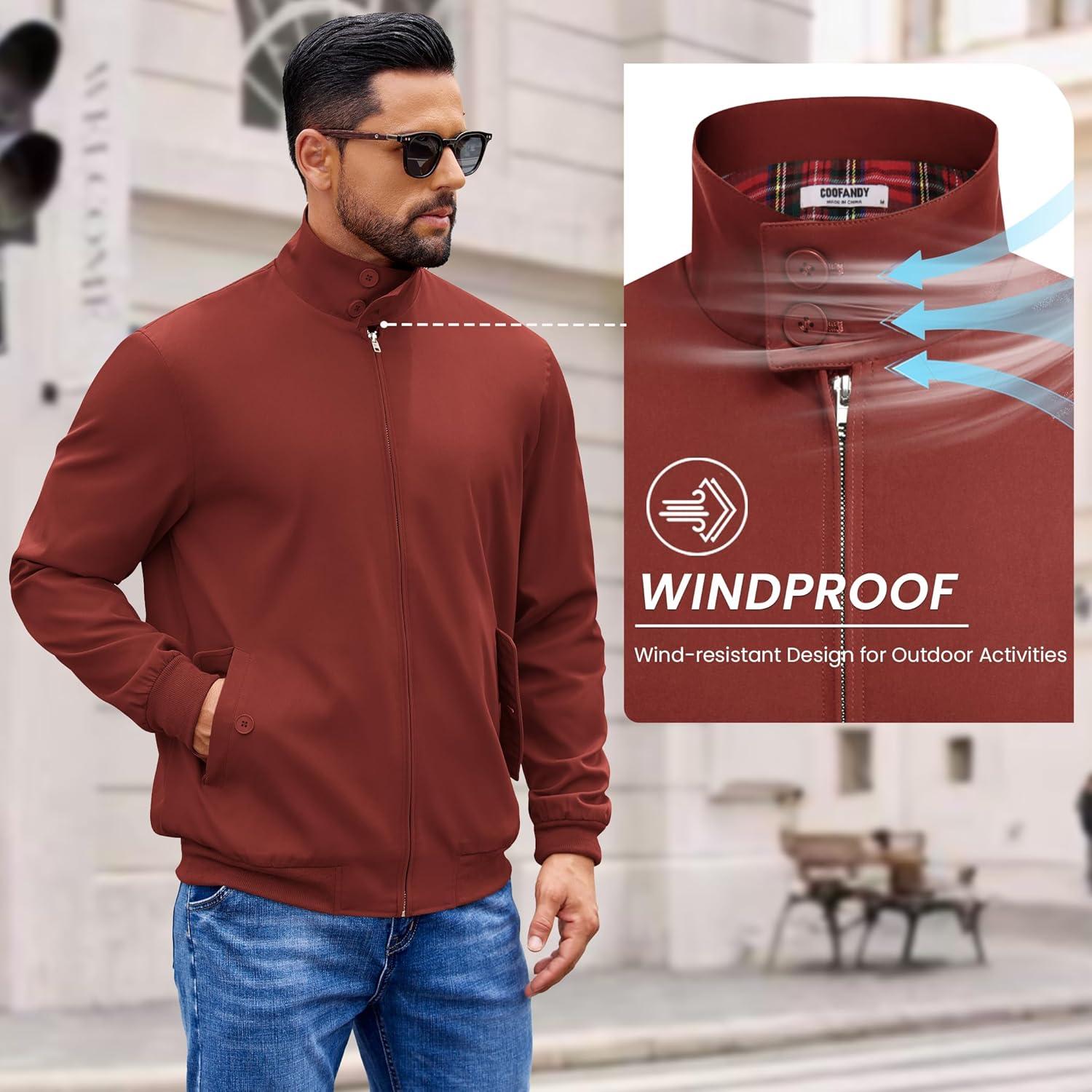 imageCOOFANDY Mens Lightweight Jackets Casual Windbreaker Zip Up Coat Stand Collar Golf Jacket Stylish Fall Work BusinessWine Red
