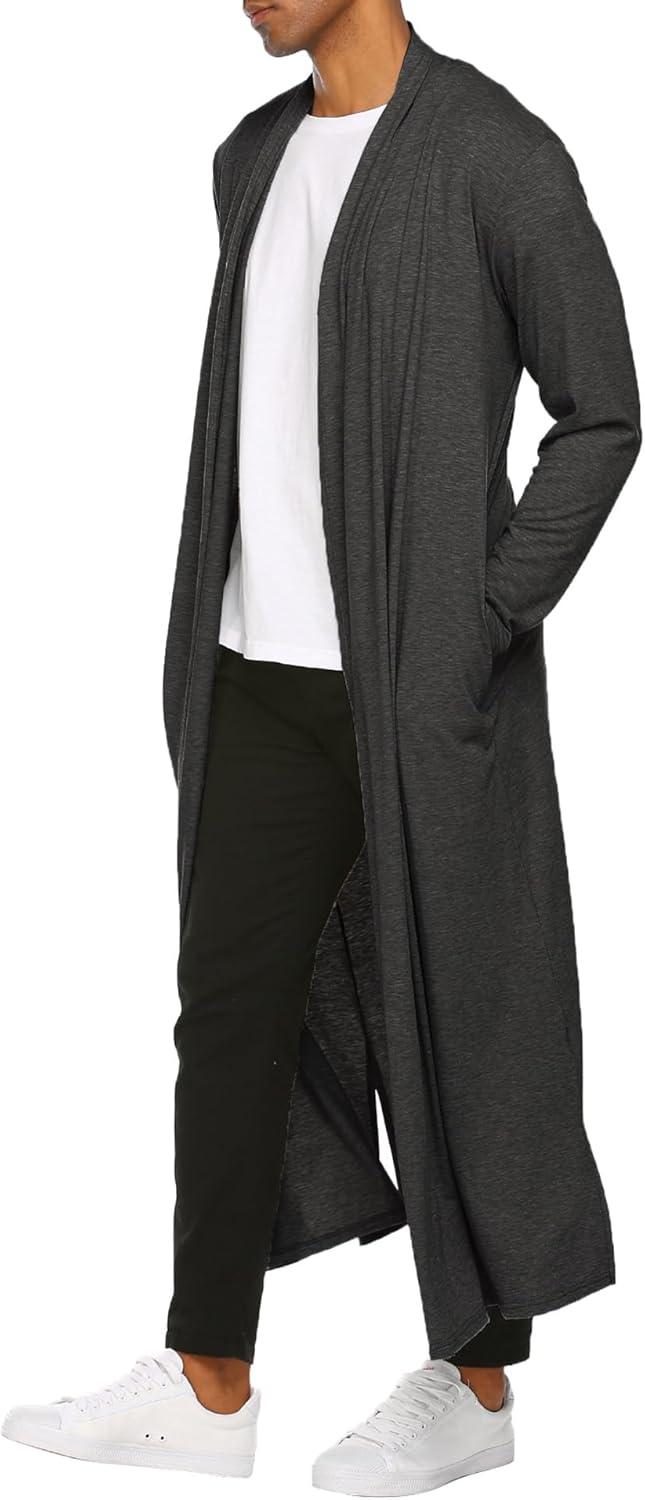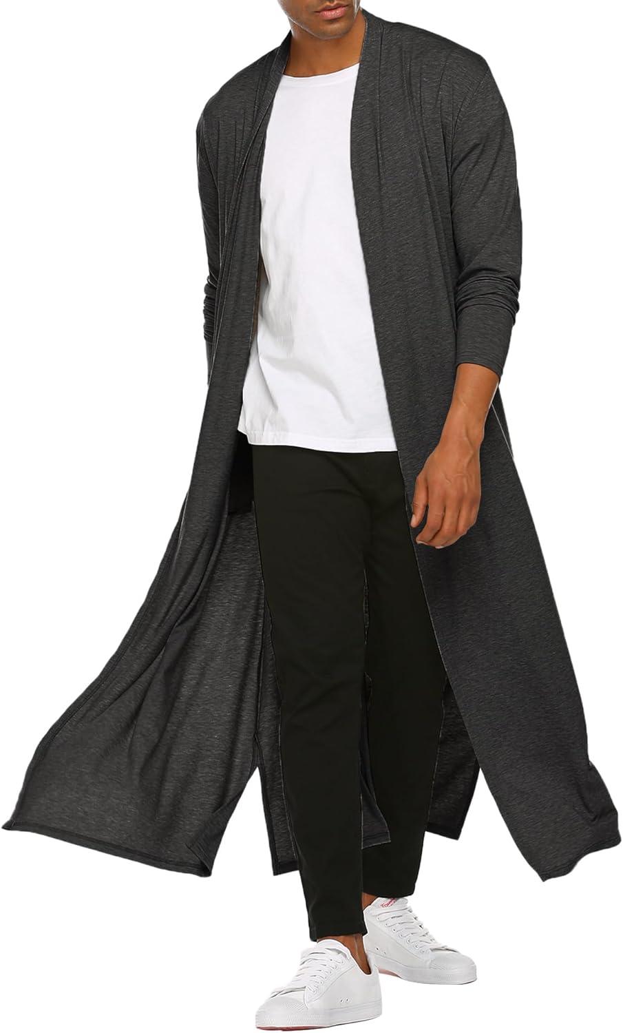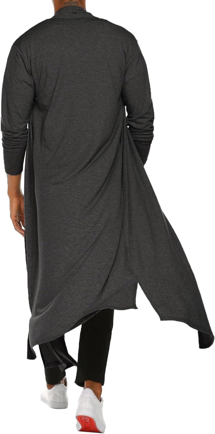 COOFANDY Men's Lightweight Ruffle Shawl Collar Cardigan Open Front Long Length Drape Cape Overcoat(Dark Grey)