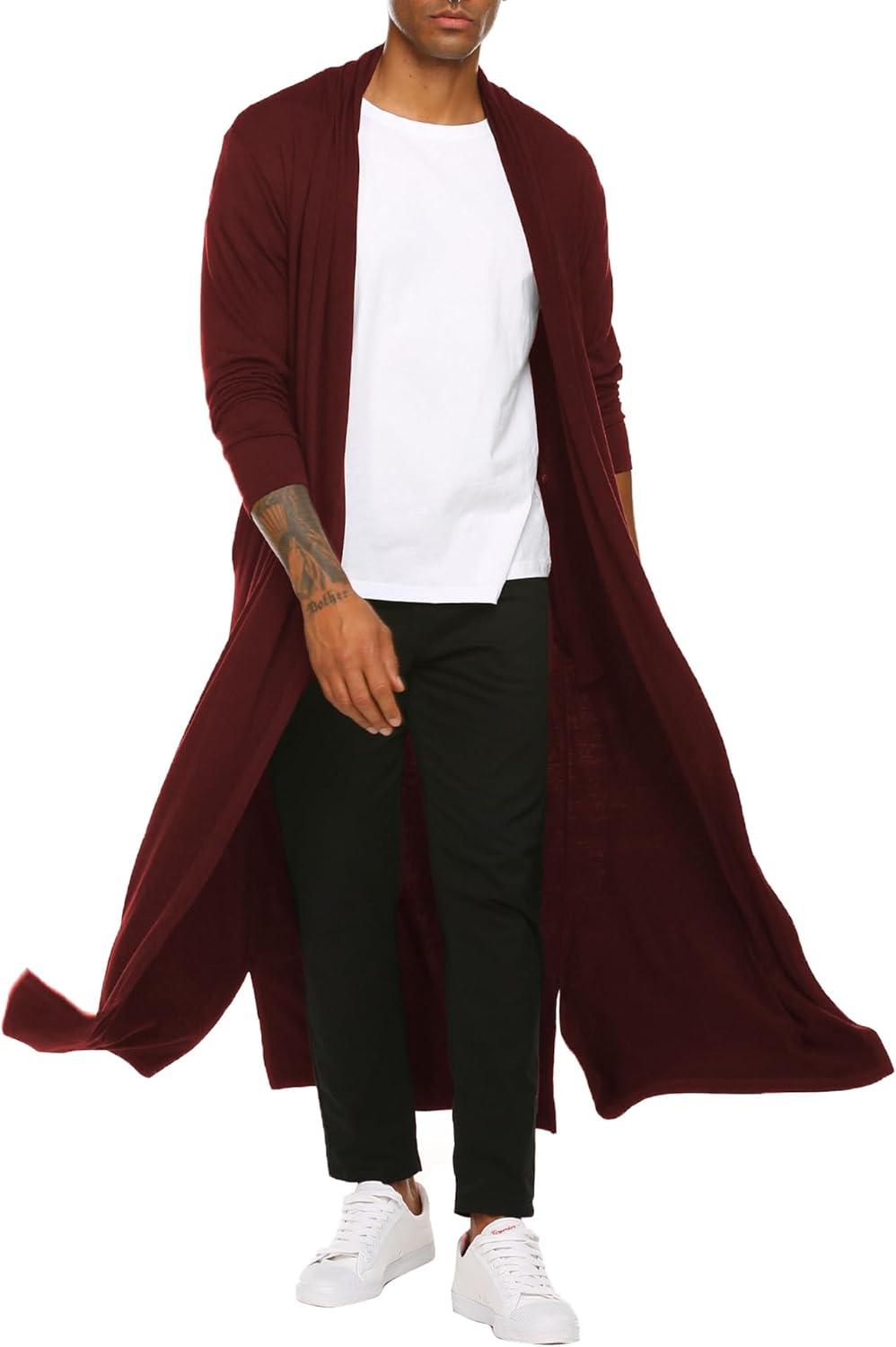 COOFANDY Men's Lightweight Ruffle Shawl Collar Cardigan Open Front Long Length Drape Cape Overcoat(Wine Red)