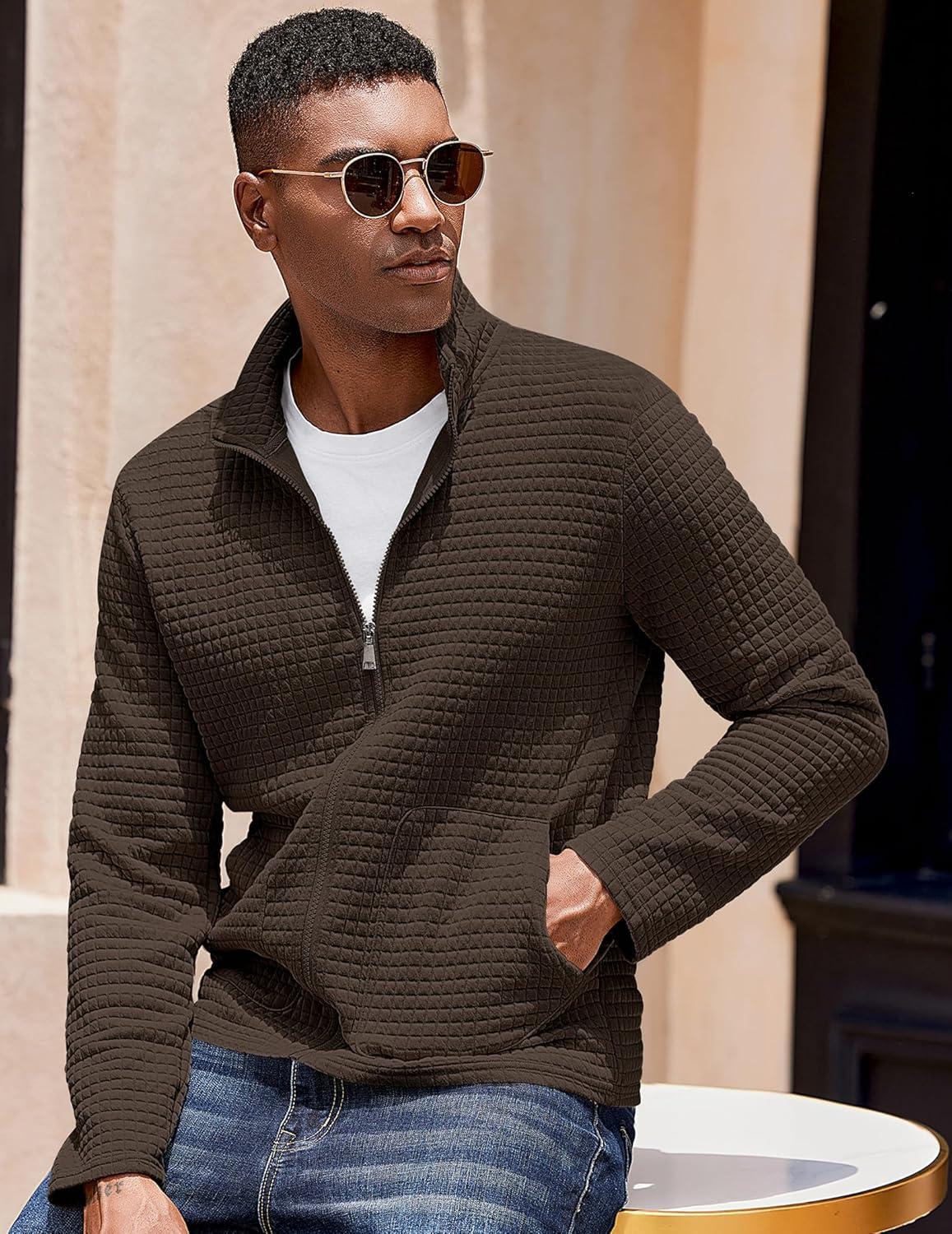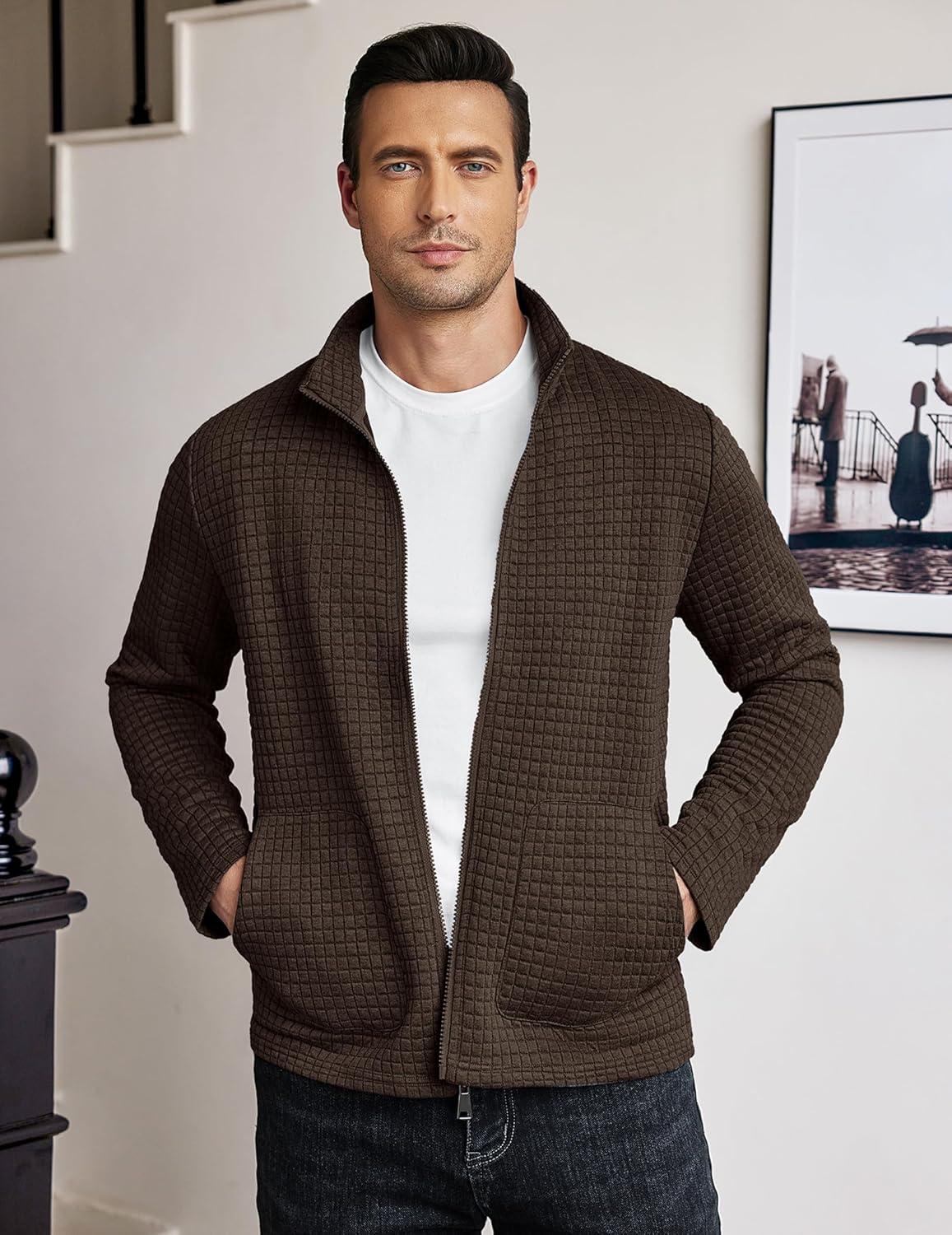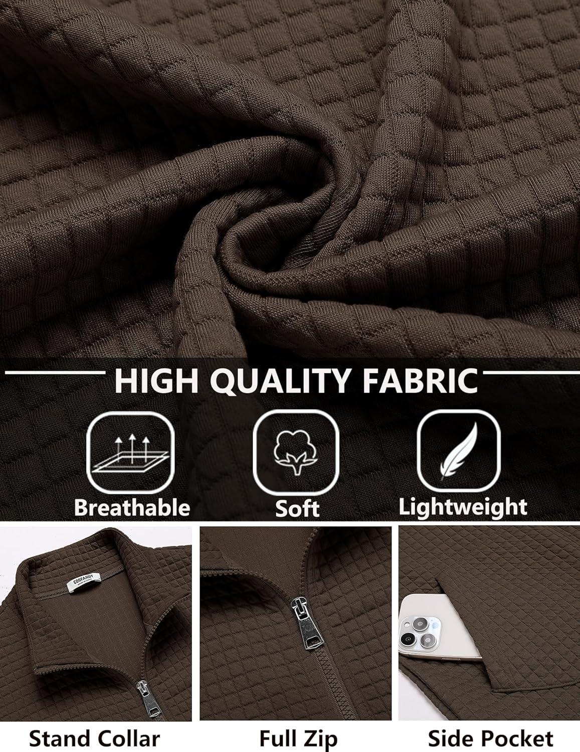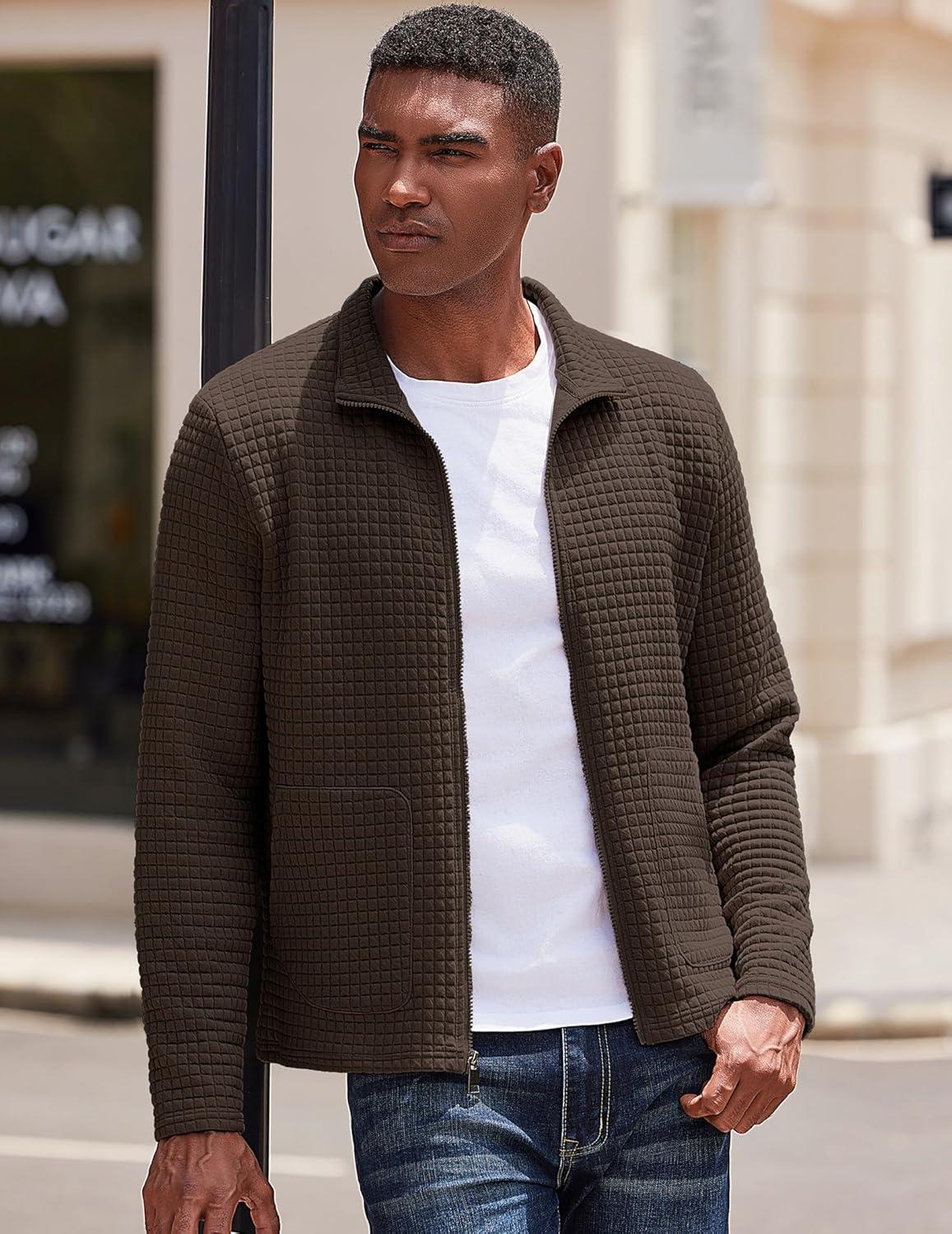 COOFANDY Men's Lightweight Varsity Jacket Casual Bomber Jackets Waffle Zip Up Coat with Pocket(Brown)