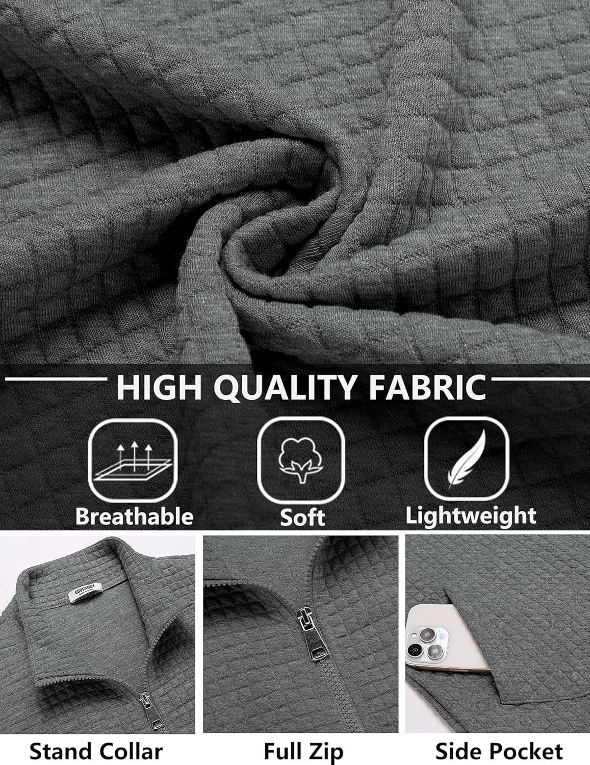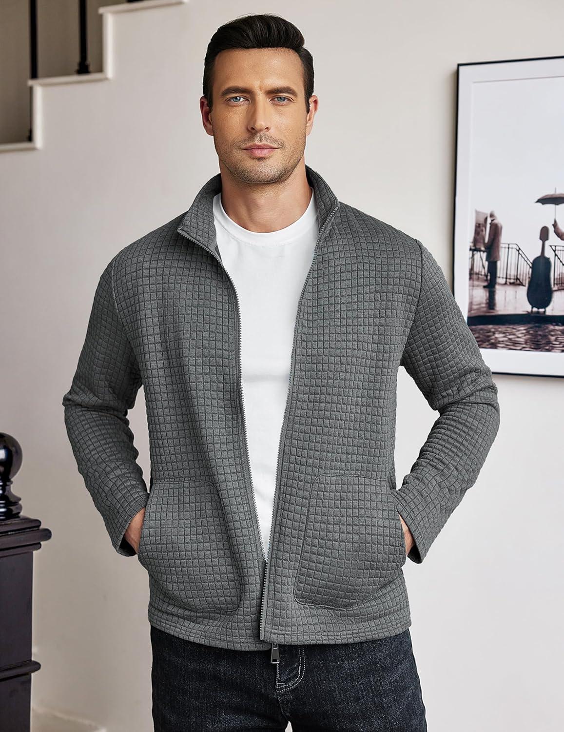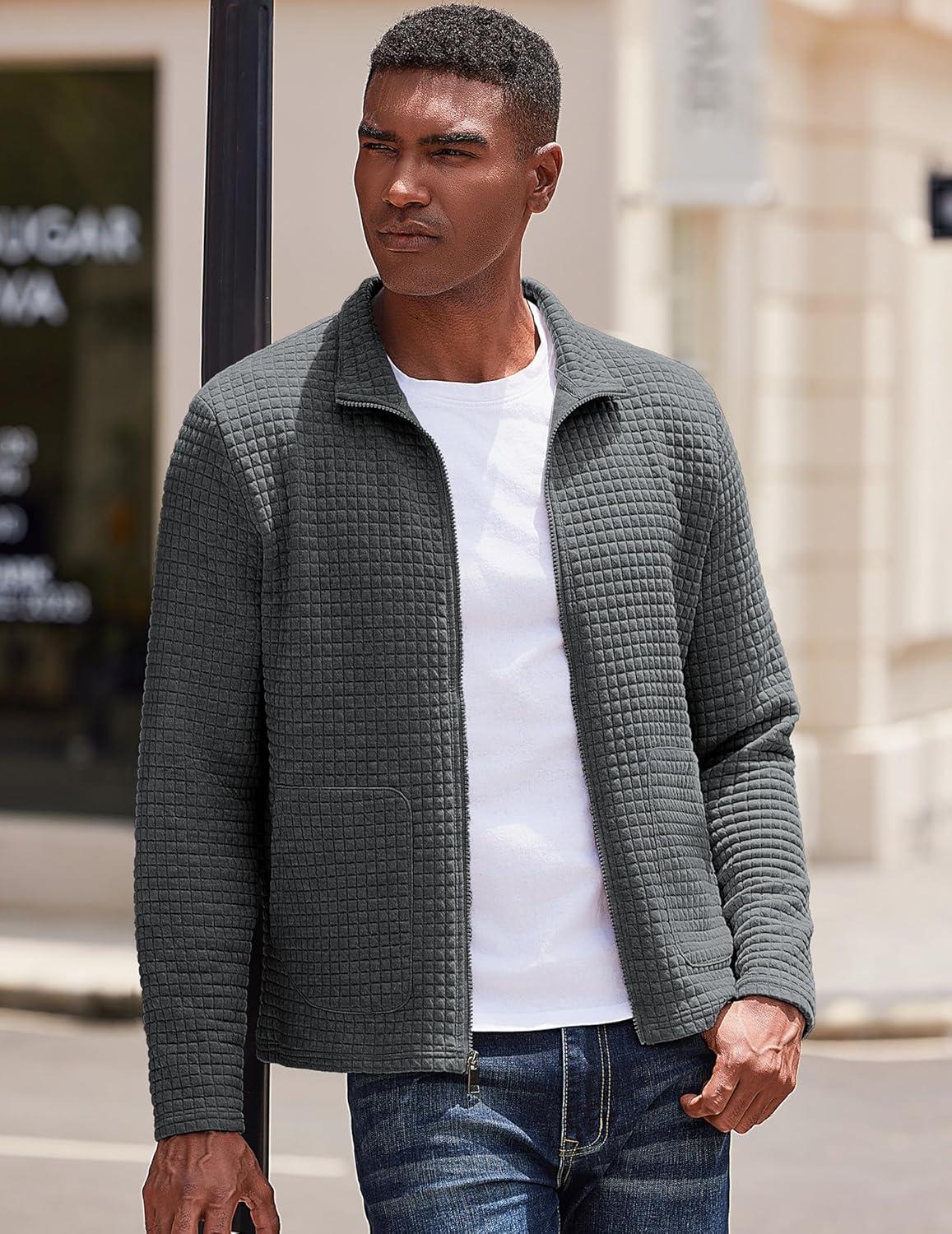 COOFANDY Men's Lightweight Varsity Jacket Casual Bomber Jackets Waffle Zip Up Coat with Pocket(Dark Grey)