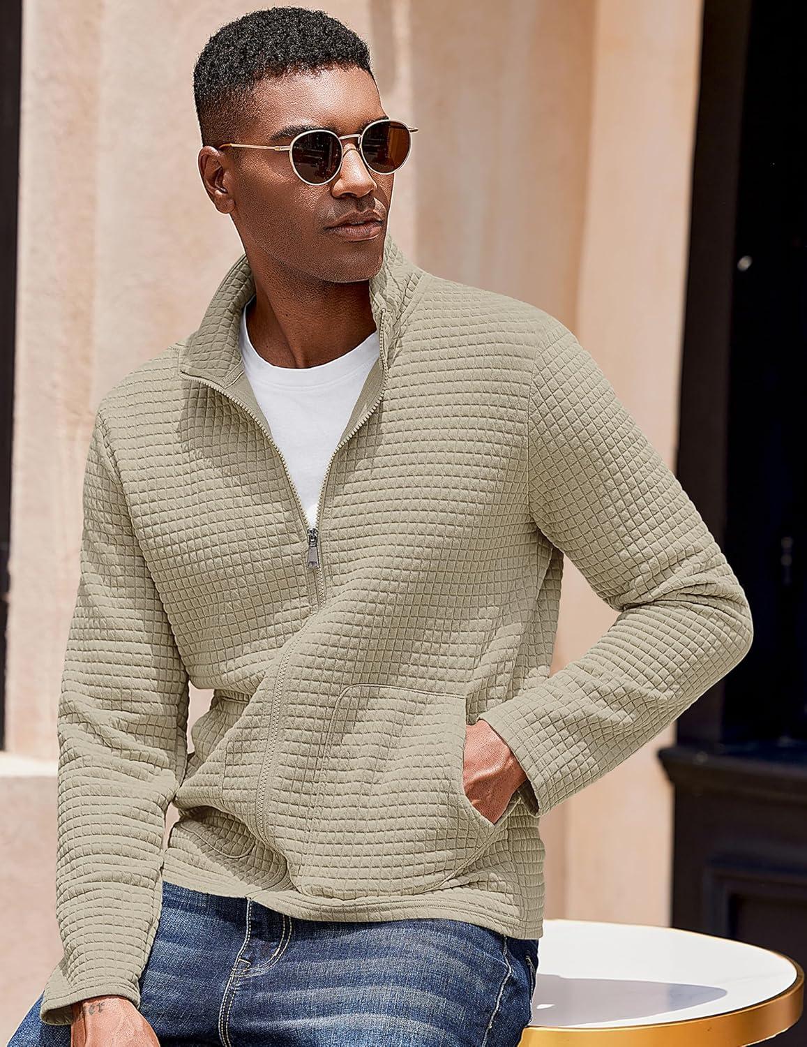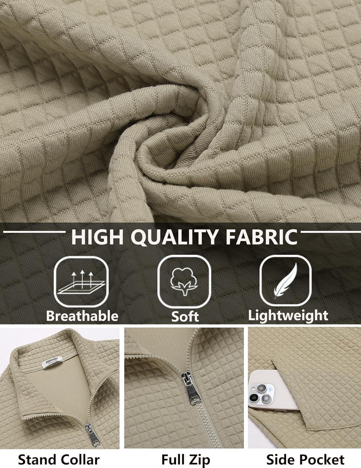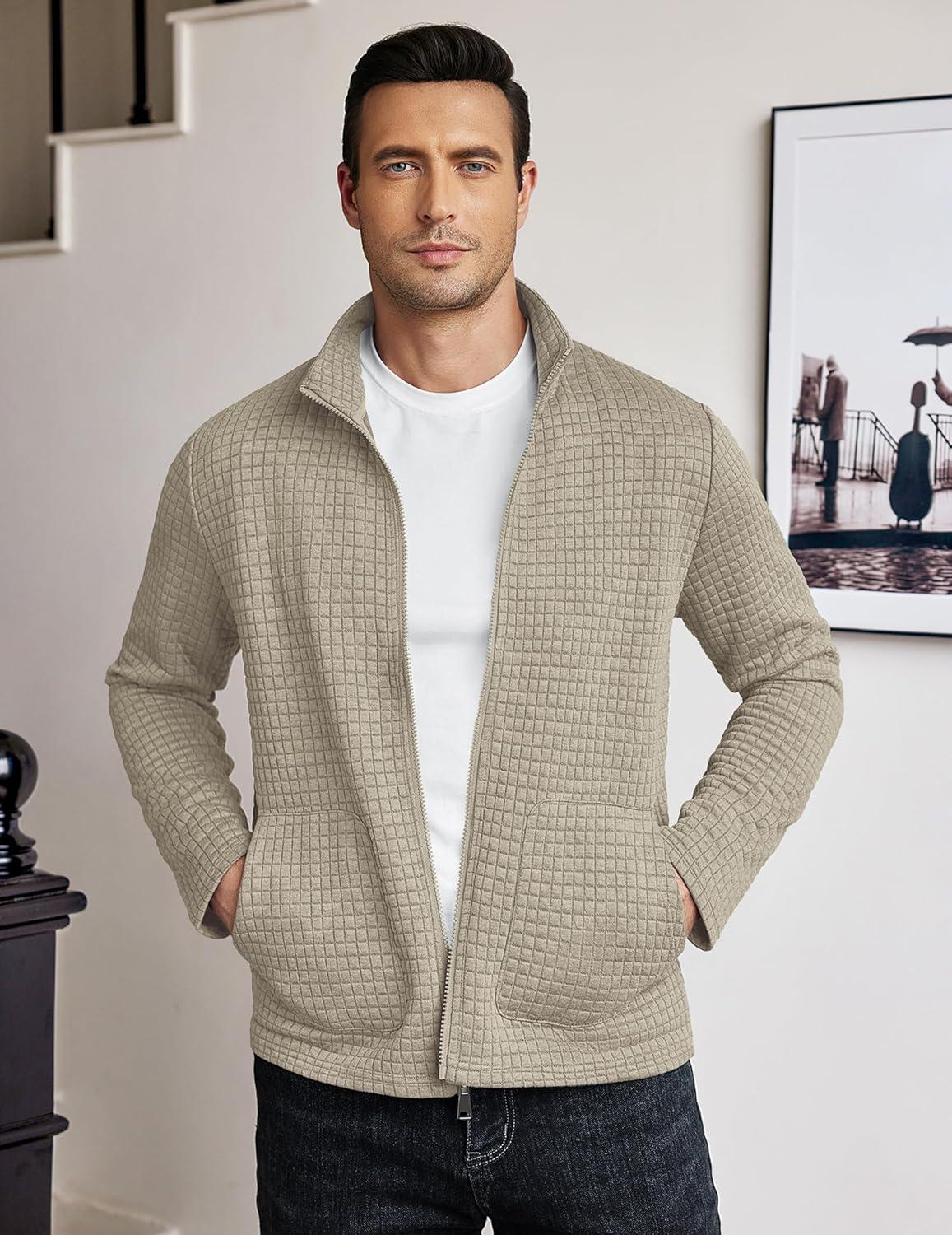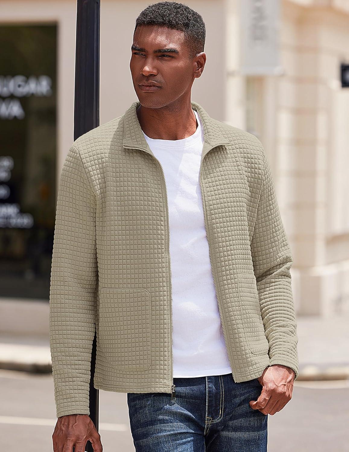 COOFANDY Men's Lightweight Varsity Jacket Casual Bomber Jackets Waffle Zip Up Coat with Pocket(Moon Grey)