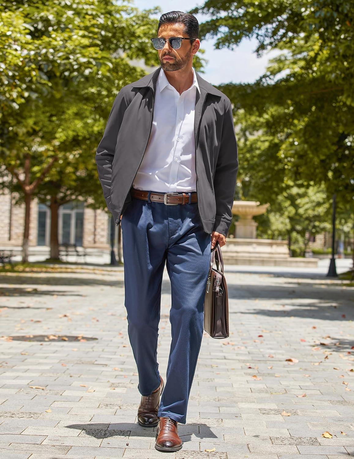 COOFANDY Men’s Lightweight Zip Up Jacket Eisenhower Work Office Jackets Casual Golf Outwear(Charcoal)