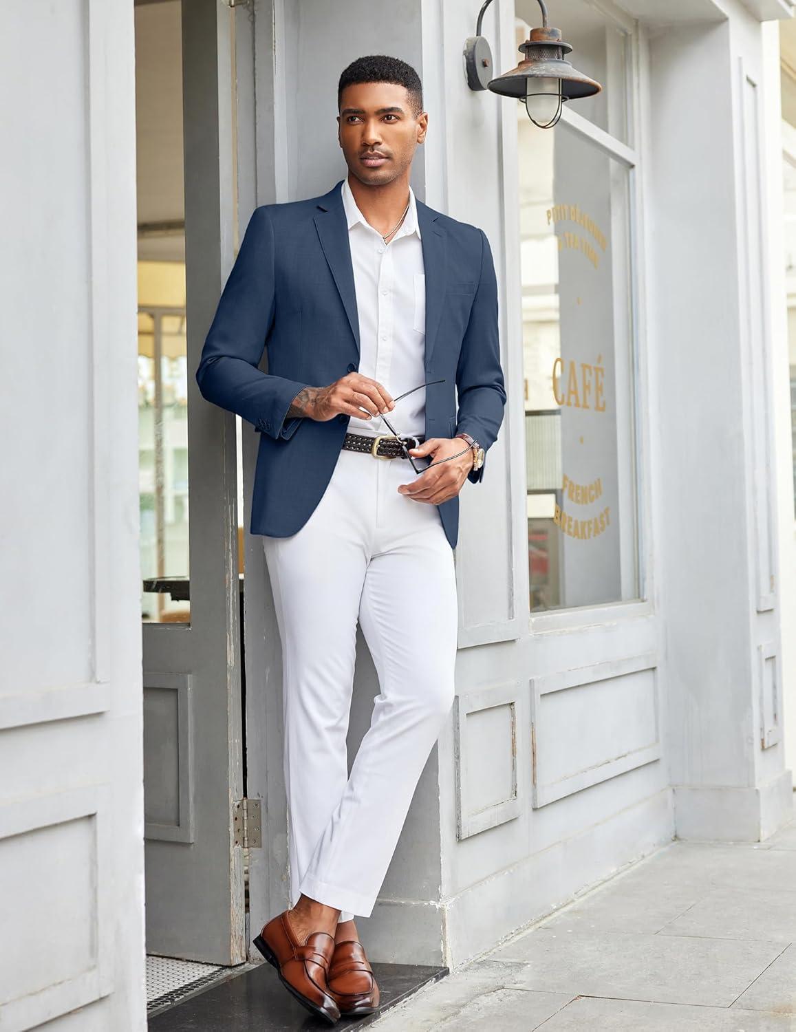 COOFANDY Mens Linen Casual Blazer Slim Fit Sport Coat Two Button Summer Suit Jacket Lightweight Business Sport Jacket(Blue)
