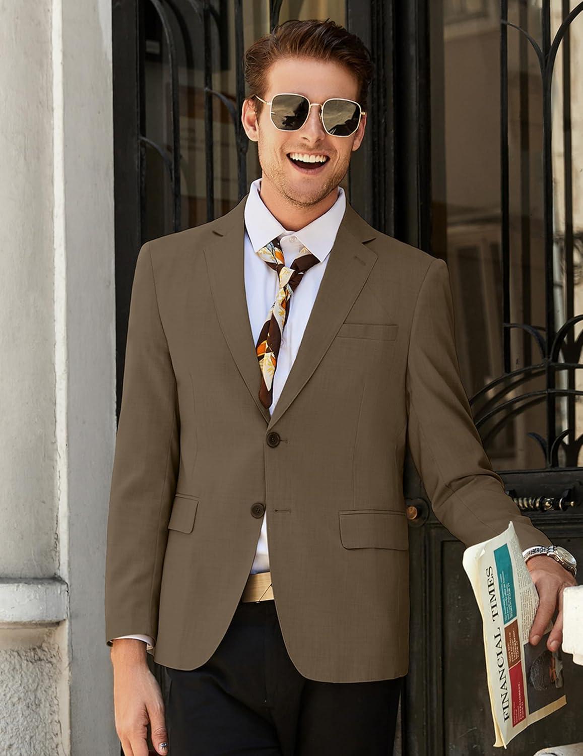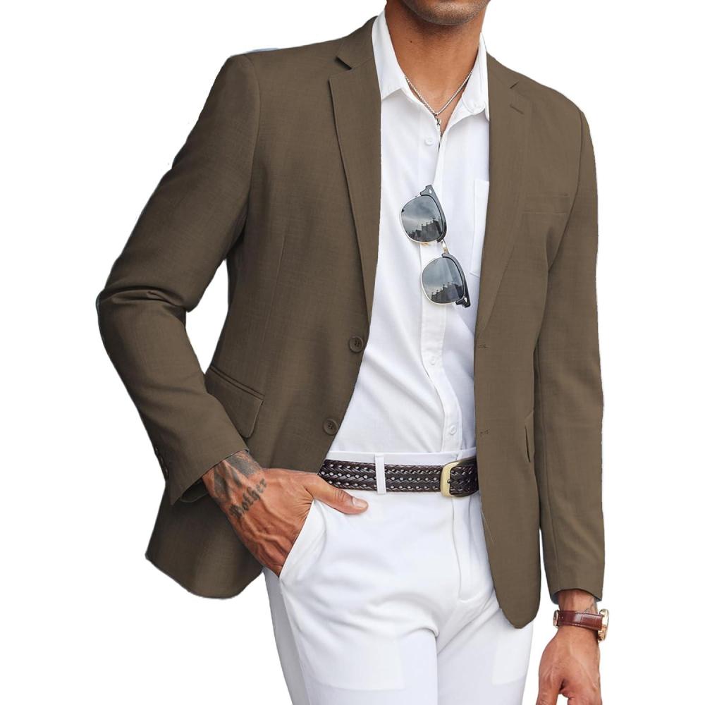 COOFANDY Mens Linen Casual Blazer Slim Fit Sport Coat Two Button Summer Suit Jacket Lightweight Business Sport Jacket(Brown)