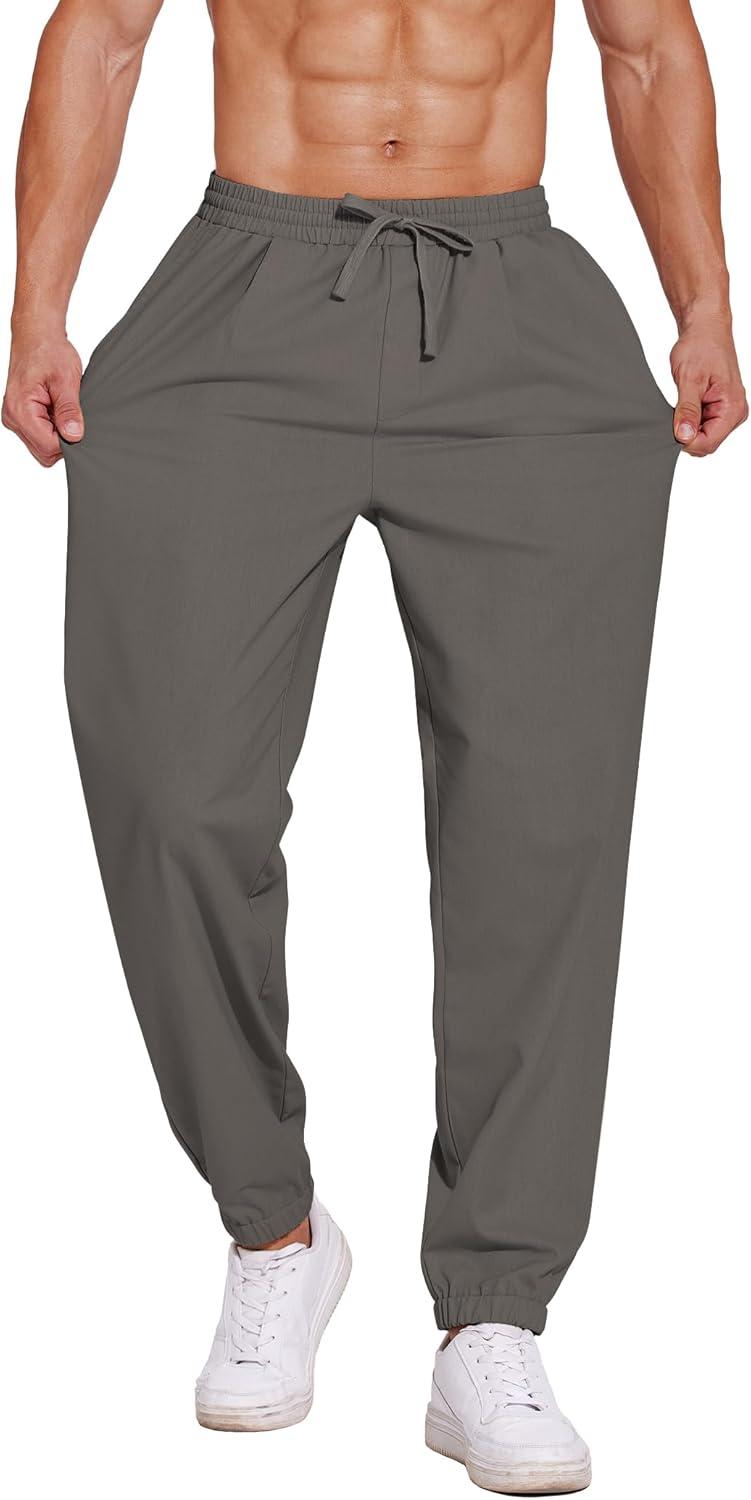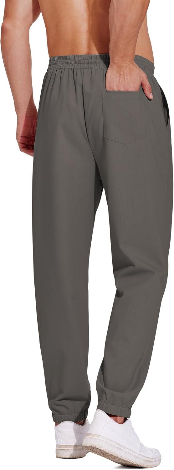 COOFANDY Men's Linen Casual Lightweight Pants Elastic Waist Drawstring Beach Pants with Pockets(Dark Gray)