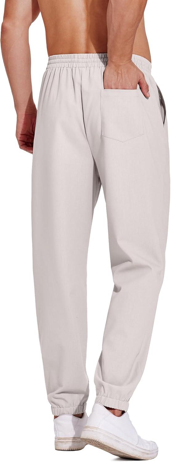 COOFANDY Men’s Linen Casual Lightweight Pants Elastic Waist Drawstring Beach Pants with Pockets(Light Grey)