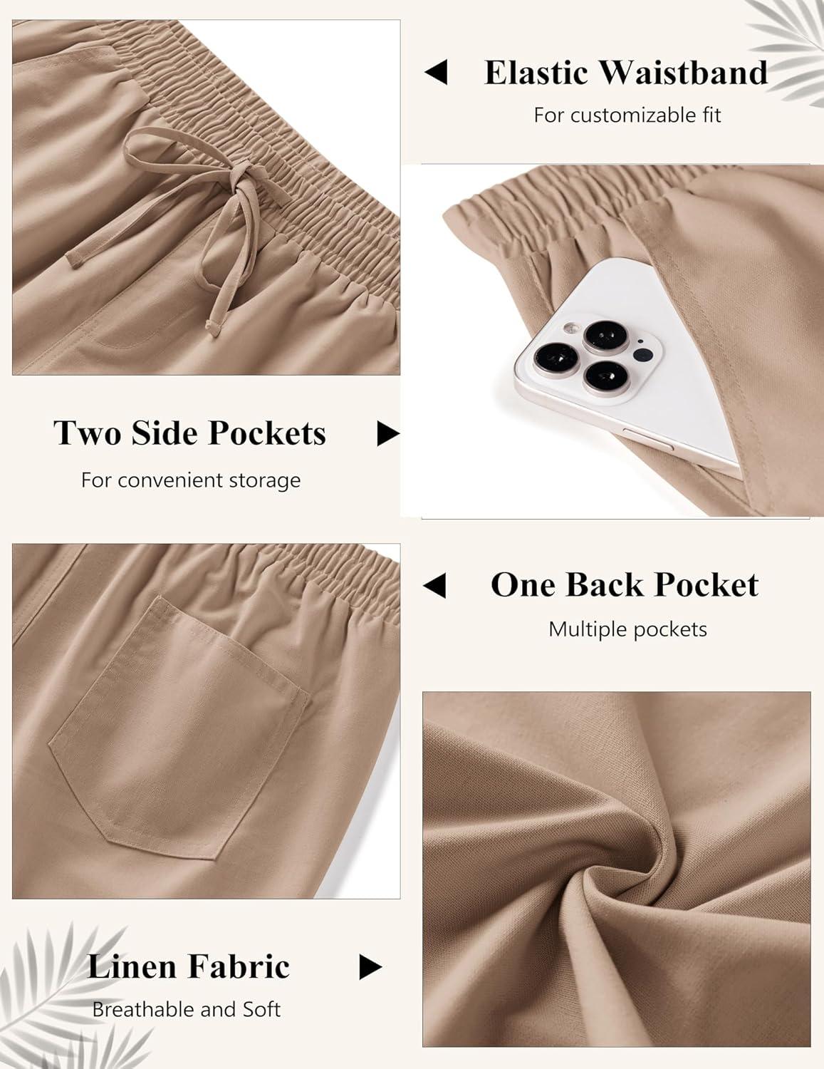 COOFANDY Men’s Linen Casual Pants Elastic Waist Beach Pants Lightweight Drawstring Summer Yoga Pants(Khaki)