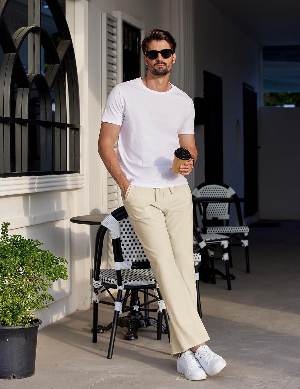 COOFANDY Men’s Linen Casual Pants Elastic Waist Beach Pants Lightweight Drawstring Summer Yoga Pants(Black)