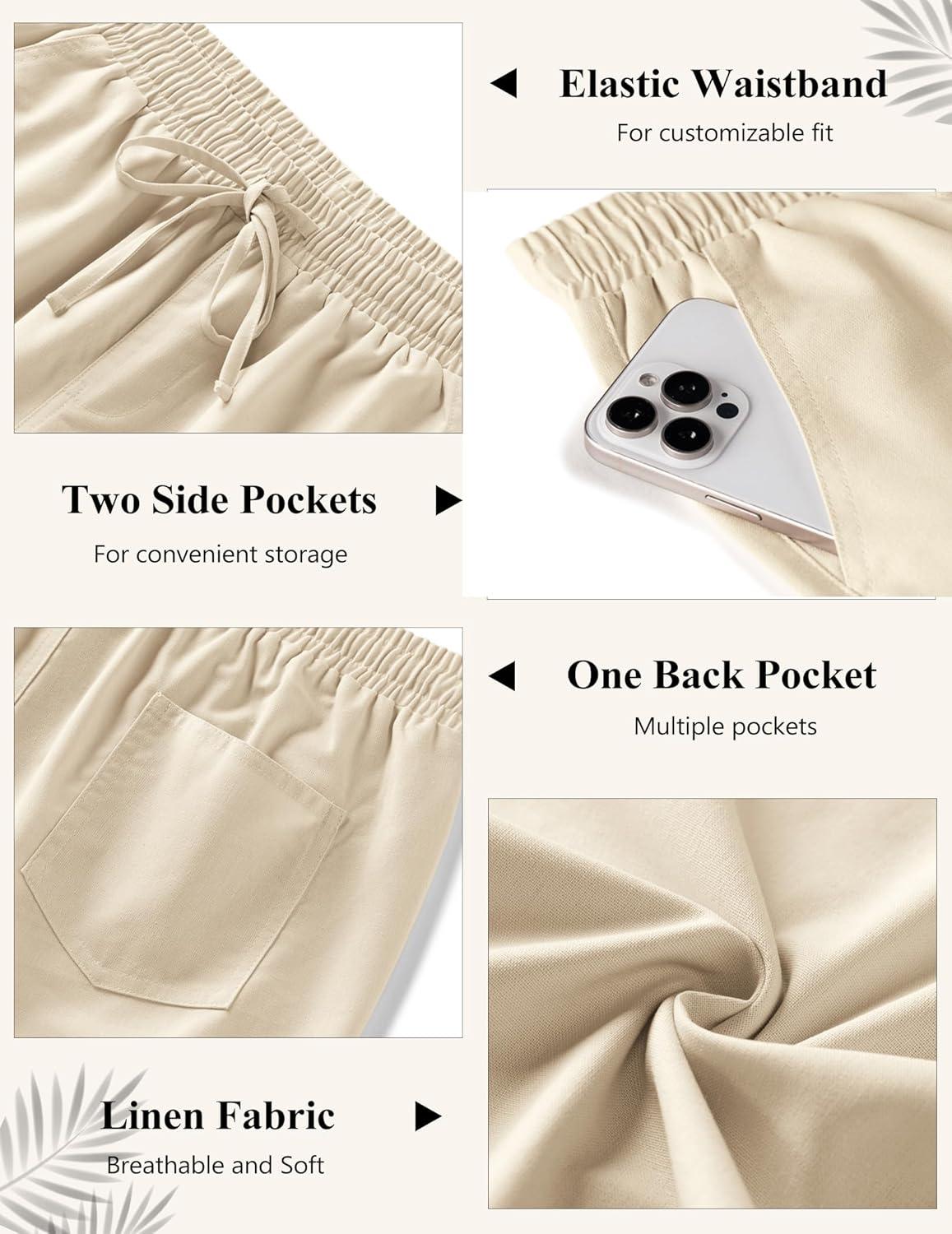COOFANDY Men’s Linen Casual Pants Elastic Waist Beach Pants Lightweight Drawstring Summer Yoga Pants(Light Khaki)