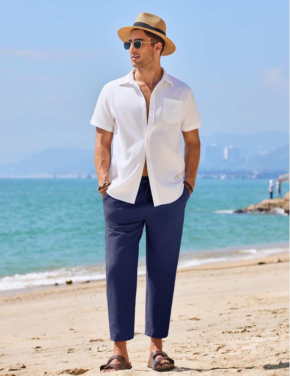 Be the first to review “COOFANDY Mens Linen Casual Pants Elastic Waist Drawstring Trousers Yoga Beach Summer Pants(Navy Blue)”