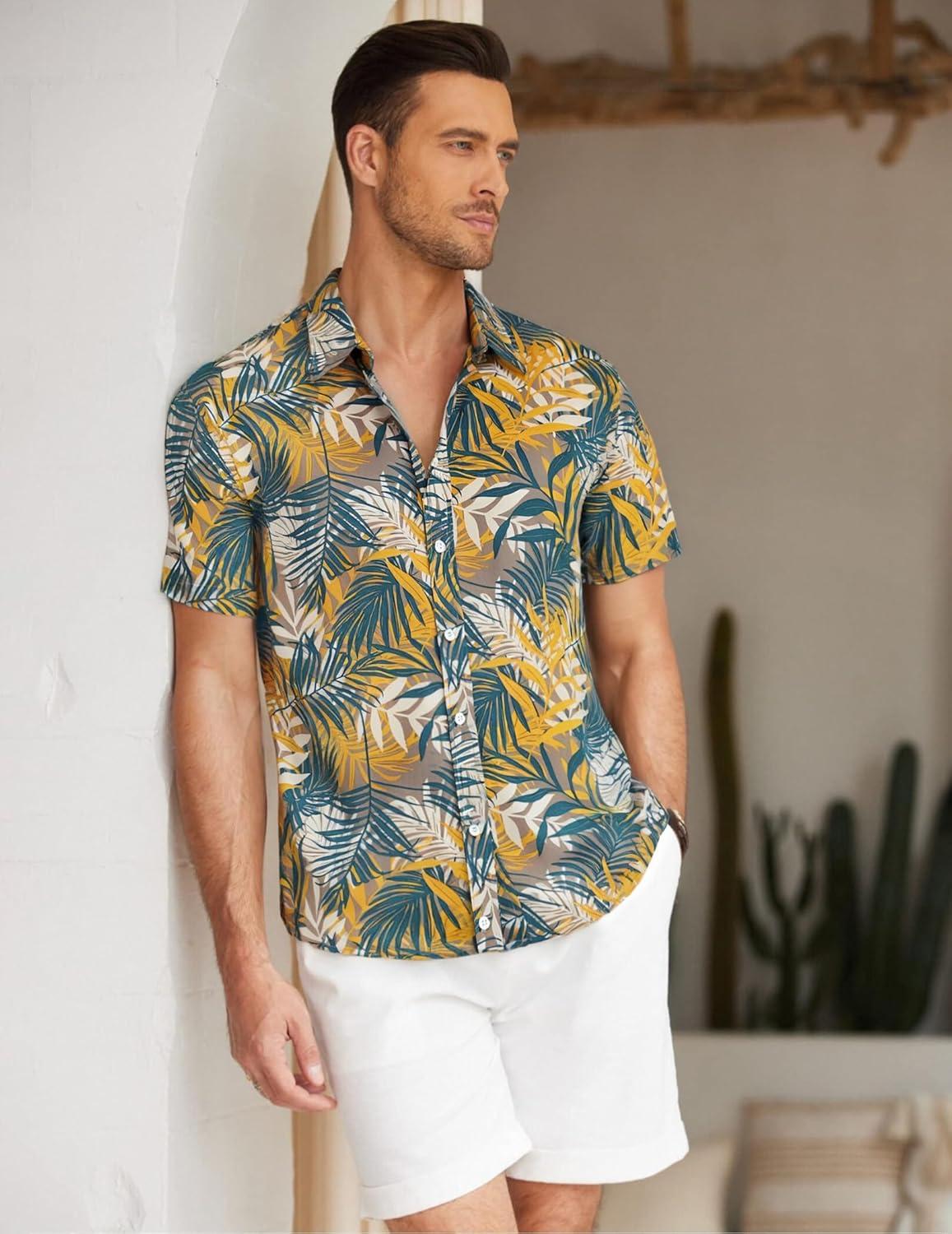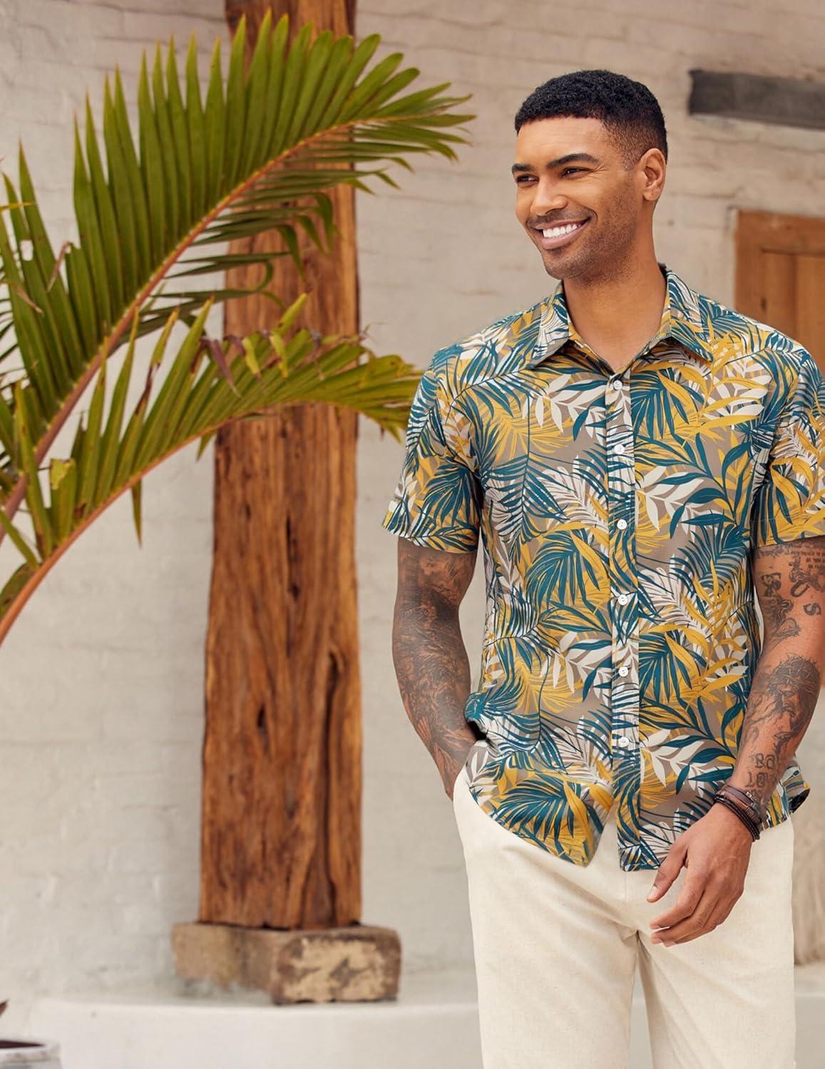 Get up to 60% off on COOFANDY Mens Linen Casual Short Sleeve Shirt Button Down Summer Beach Shirts(Z-leaves-khaki) styles during our winter sale event.