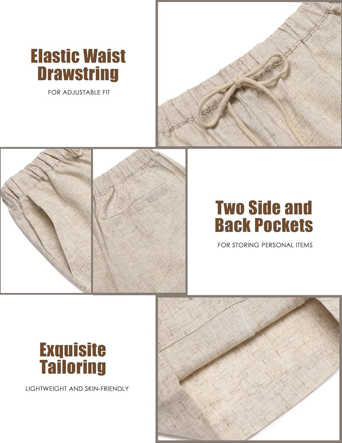 COOFANDY Men's Linen Harem Capri Pants Casual Lightweight Drawstring Yoga Pants Baggy 3/4 Beach Trousers(Khaki)