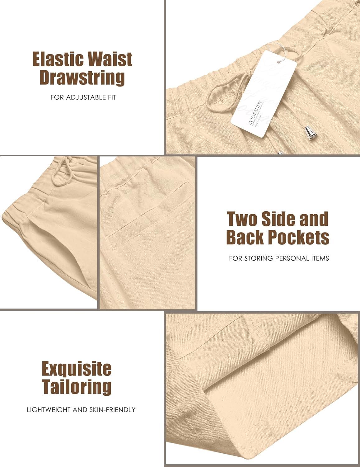 COOFANDY Men’s Linen Harem Capri Pants Casual Lightweight Drawstring Yoga Pants Baggy 3/4 Beach Trousers(Khaki)