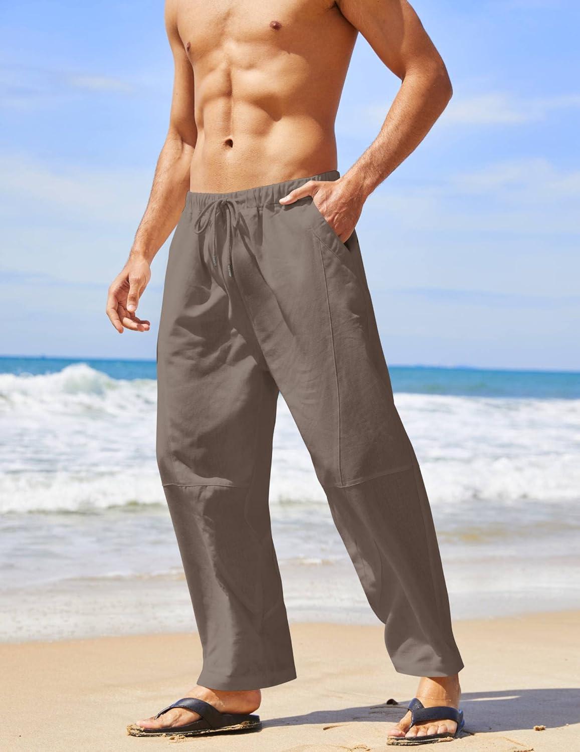 COOFANDY Men’s Linen Harem Drawstring Pants Casual Elastic Waist Lightweight Trouser Hippie Summer Beach Yoga Pants(Grey)